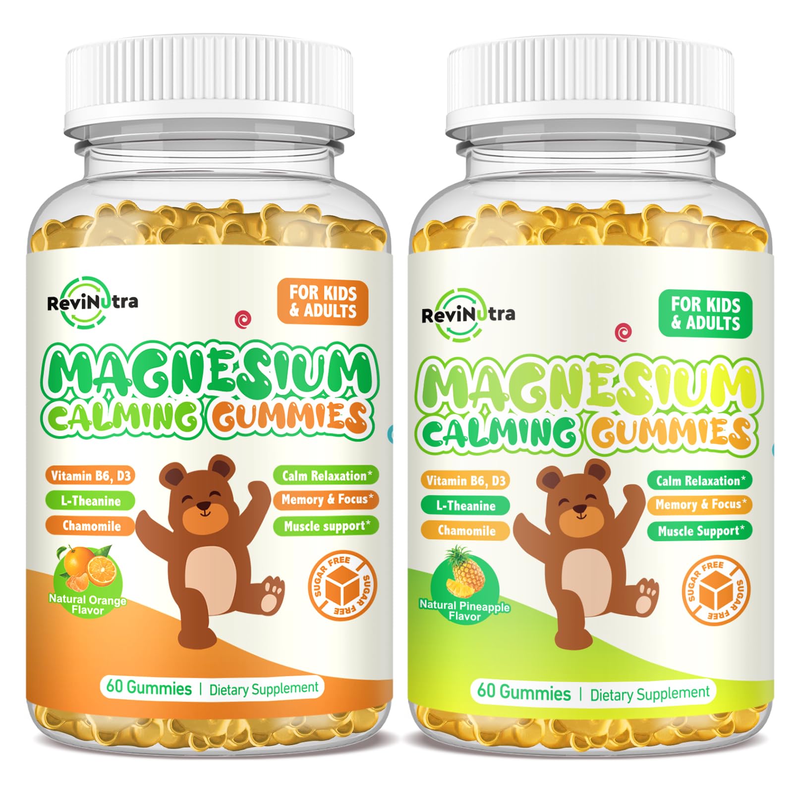 Magnesium Gummies for Kids - Magnesium Glycinate Supplement with L-Theanine Vitamin B6 D3 for Adults & Kids Calm Magnesium for Sleep Relaxation Brain Bones Orange & Pineapple