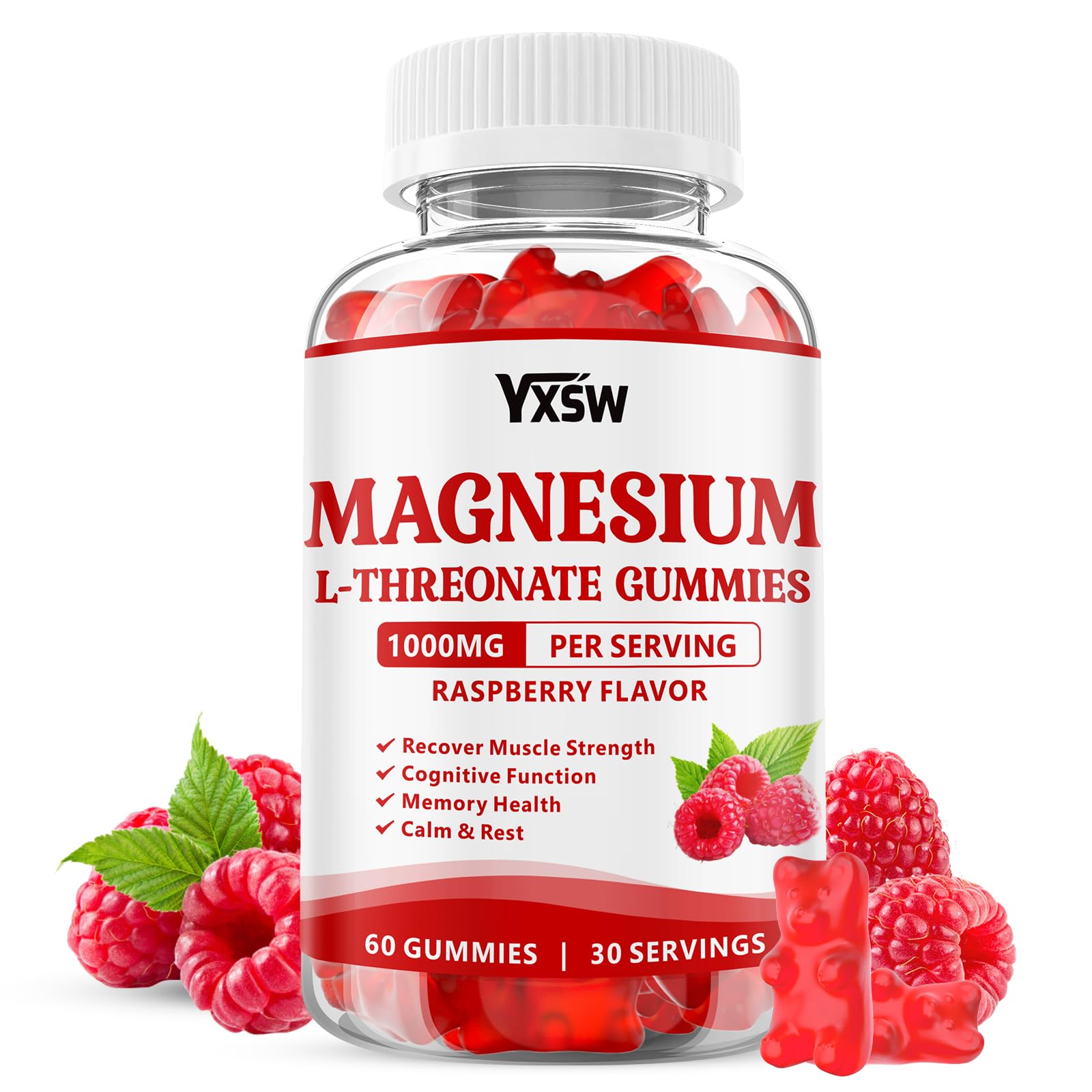 Health: Our magnesium l-threonate supplements are made with non-GMO, gluten-free, and dairy-free ingredients, contain no artificial additives, fillers, or preservatives, comply with GMP standards, and have passed laboratory testing. Delicious Gummies: Raspberry flavor magnesium l threonate gummies are non-sticky, non-bitter, and easy to chew. Unlike capsules and powders that are difficult to swallow, delicious raspberry-flavored magnesium l threonate gummies are easier to accept. Muscle Support: Sugar-free magnesium L-threonate gummies can regulate muscle contraction and relaxation, reducing muscle spasms or fatigue, and work synergistically with calcium and other minerals to maintain bone health. Support Nervous System: Our magnesium L-threonate supplement not only contributes to overall brain health, improves attention and learning abilities, but also helps to achieve good sleep and regulate natural sleep patterns. Powerful Benefits: Magnesium L-threonate is a new type of magnesium supplement with high bioavailability, which can help supply the deficiency of magnesium to power. Our magnesium l-threonate Gummies deliver 1000mg per serving to support nervous system function, muscle relaxation, and cognitive health in kids adults.