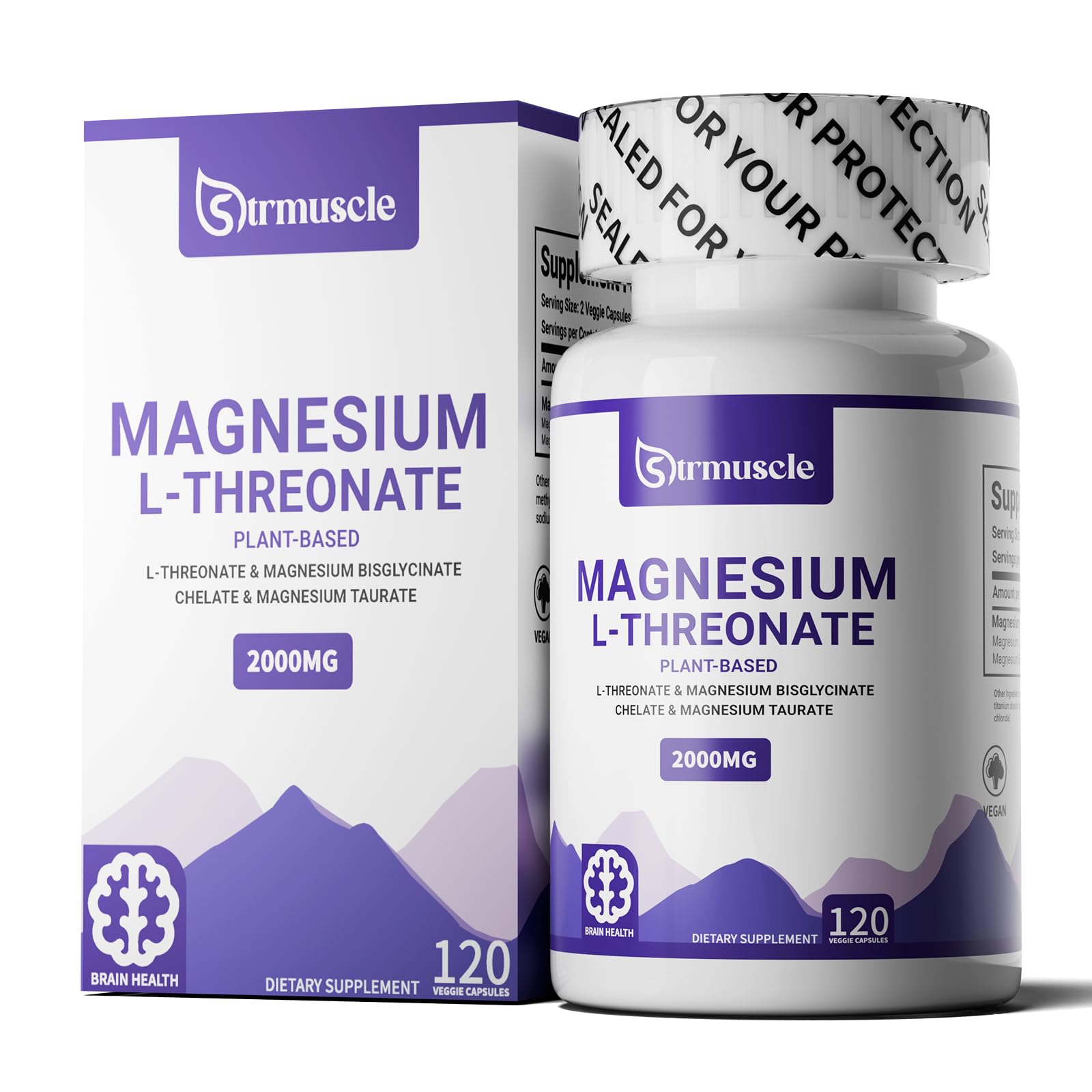 Magnesium L-Threonate Plant-Based by Strmuscle Supplement for Insomniacs Sleep Formula 2000mg 60 Day Sleep & Brain Support Vegetarian Friendly 01
