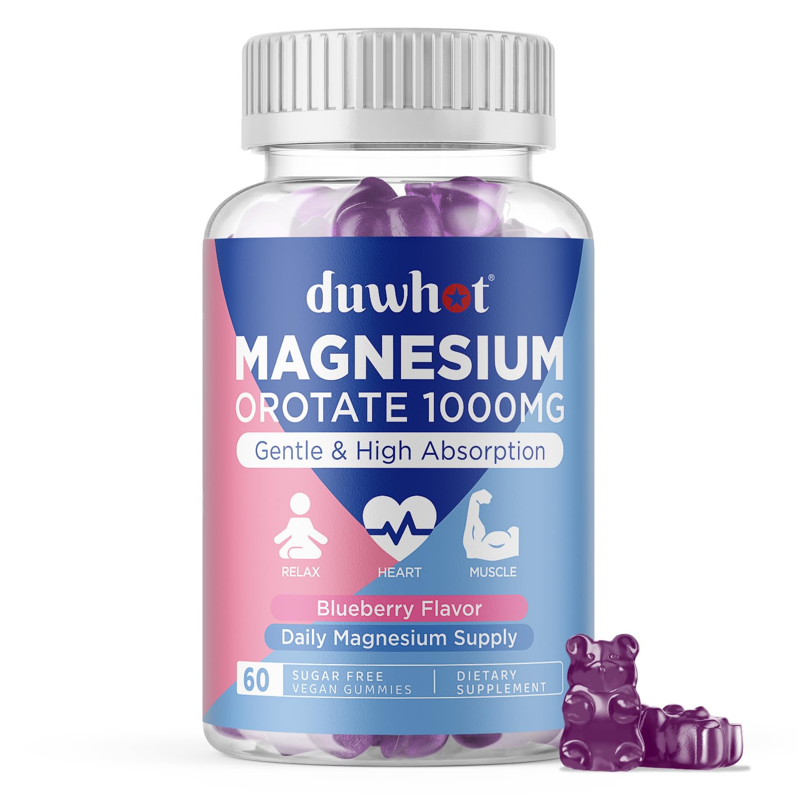 Natural Superior: Each magnesium gummy is sugar-free, GMP-certified, gluten-free, non-GMO, and vegan-friendly. They have been 3rd-Party Tested for superior quality and consistency. Wonderful Blueberry Flavor - Unlike capsules and tablets, our magnesium orotate gummies for adults kids have a blueberry flavor that is easy to chew and swallow, with no aftertaste. Comes with 60 chewables, 30-day supply. Multi-Health Support: These supplements combine magnesium with orotic acid to provide daily magnesium. It supports cellular energy production and nervous system balance. It aids in daily stress relief, supporting a relaxed mood and quality sleep. Vitality Heart Care: Compared to other magnesium, Magnesium orotate supports ATP production, helping boost energy while providing extra support for the heart and high-energy tissues — making it especially suitable for those who care about heart health. Highly Absorbable Magnesium Supplement: Each serving contains magnesium orotate 1000mg, an organic magnesium chewable that is more easily absorbed and gentler on the stomach than regular magnesium.