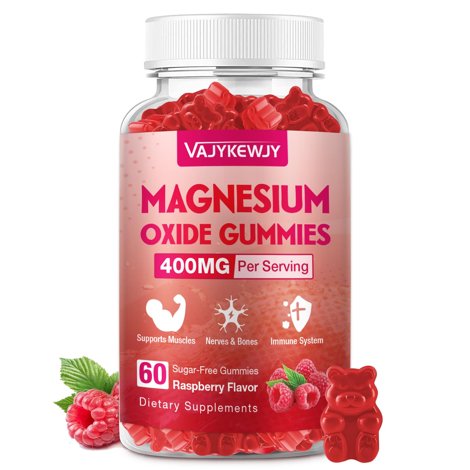 Trusted Quality – Rigorously tested for purity and potency. Each bottle contains 60 gummies for a full month's supply!. Vegan Non-GMO – Made with clean ingredients, free from gelatin, artificial colors, and gluten. Perfect for those seeking a plant-based, health-conscious supplement. Muscle Nerve Function – Magnesium plays a key role in muscle recovery and nerve function, helping to ease occasional muscle cramps and tension after workouts or daily activities. Supports Better Relaxation – Formulated with magnesium oxide to help promote restful , reduce nighttime restlessness, and support a calm nervous system for improved relaxation. Delicious Easy to Take – These magnesium oxide gummies offer a tasty raspberry flavor, making it simple for both adults and kids to get their daily magnesium without the hassle of pills or powders.
