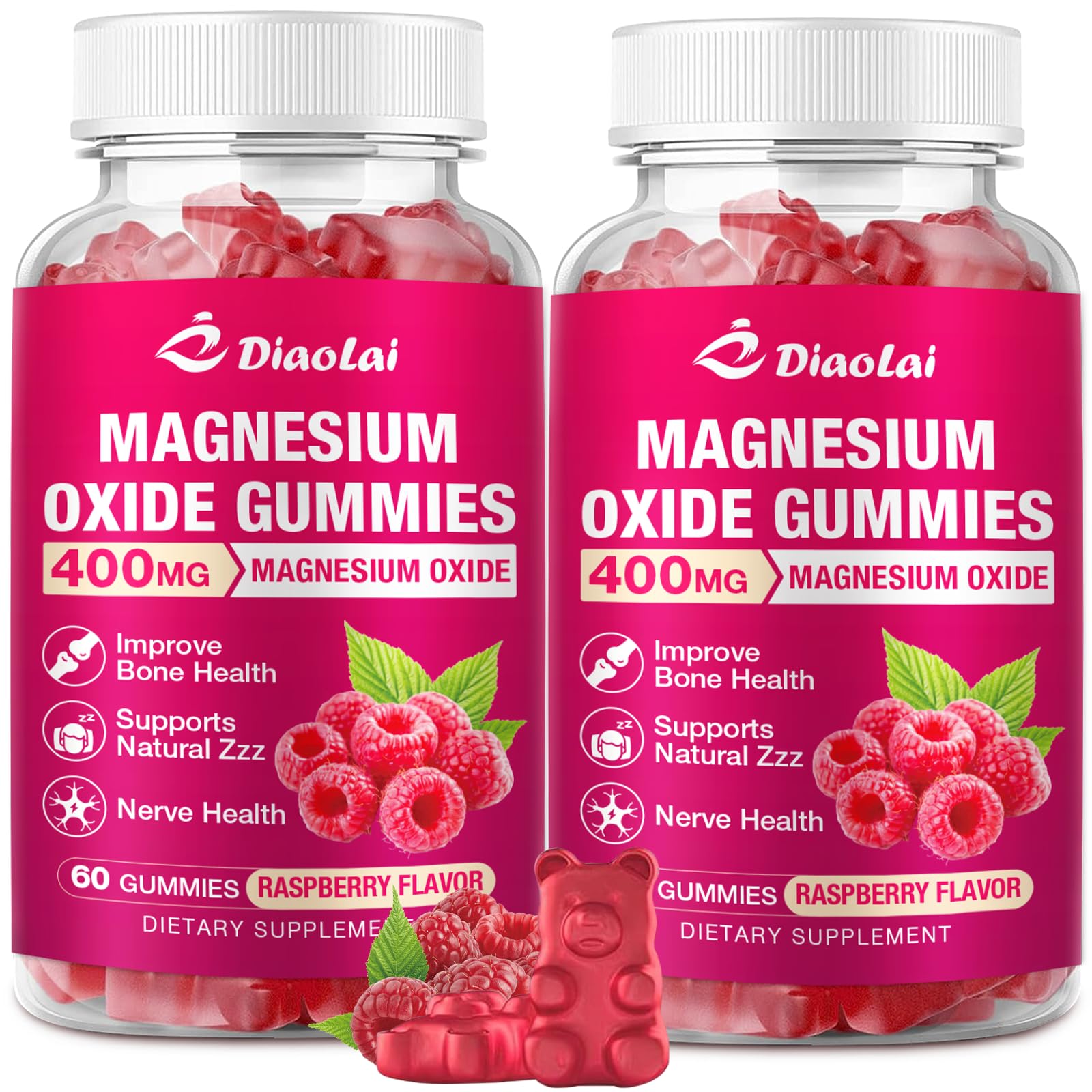 Convenient Chewable Form: Ditch the hard-to-swallow pills! Our soft, chewable gummies are an easy and enjoyable way for both adults and children to get their essential magnesium. Each bottle contains a convenient 60-count supply, perfect for making magnesium a simple and delicious part of your family's daily health regimen. Clean Formula You Can Trust: We are committed to purity and quality. Our gummies are non-GMO, gluten-free, and gelatin-free, and are meticulously manufactured in a GMP certified facility, ensuring a premium supplement that meets stringent quality standards. Delicious Sugar-Free Raspberry Treat: Our gummies feature a delightful, natural raspberry flavor that makes taking your daily magnesium a pleasure the whole family will look forward to. They are completely sugar-free, making them a smart choice for your wellness routine. Highly Bioavailable: Experience the benefits of magnesium with our gentle formula. Magnesium Oxide is known for its high elemental magnesium content, and we've crafted it into a chewable, easy-to-process gummy that is suitable for both adults and kids, minimizing digestive discomfort. Muscle Function Support: These gummies help your muscles find relief and ease after a long day, supporting your body's natural recovery process so you can wake up feeling refreshed and ready to go.