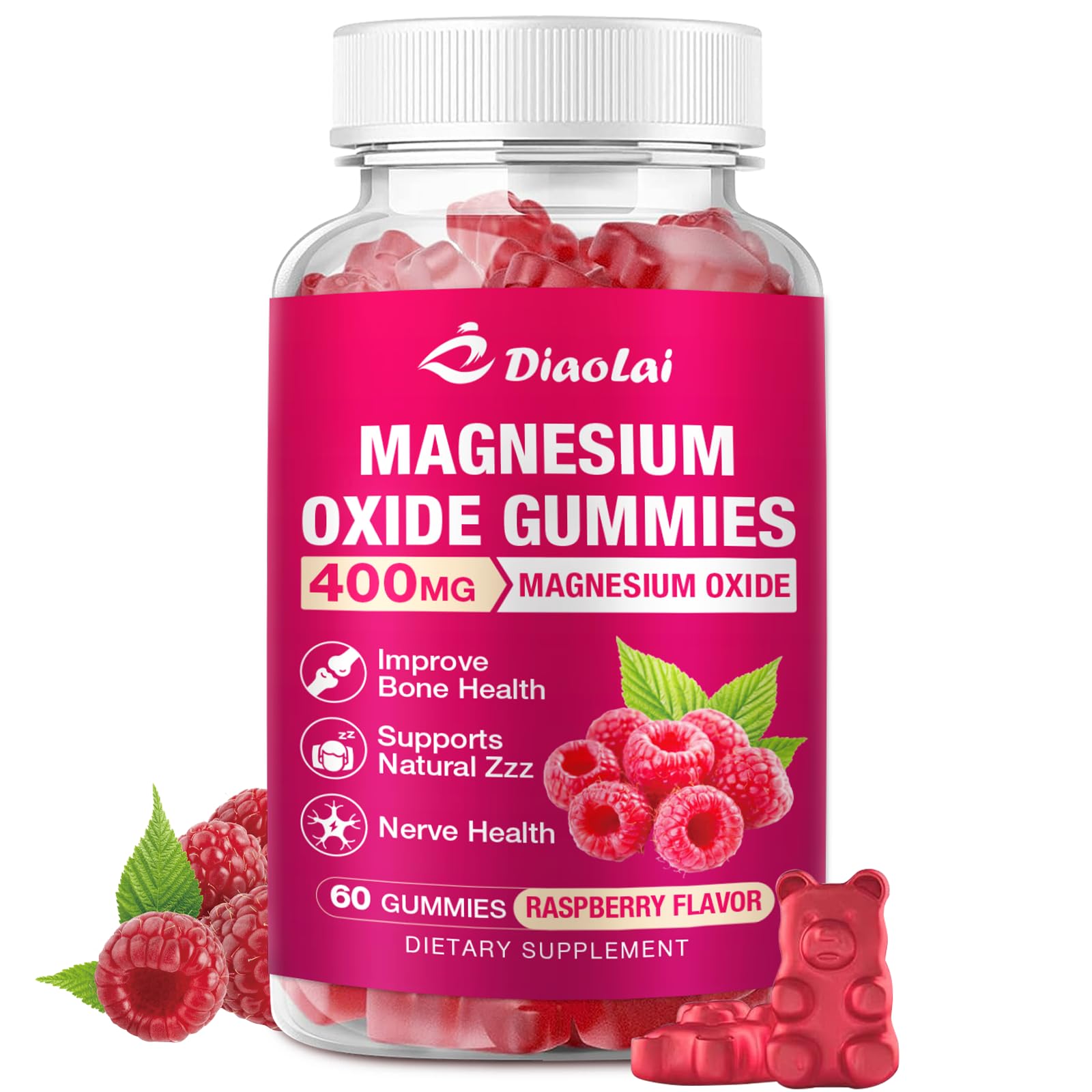 Magnesium Oxide Gummies 400mg for Nerve & Muscle Support - Chewable Supplement for Adults & Kids Sugar-Free Non-GMO Raspberry Flavor 60 Count
