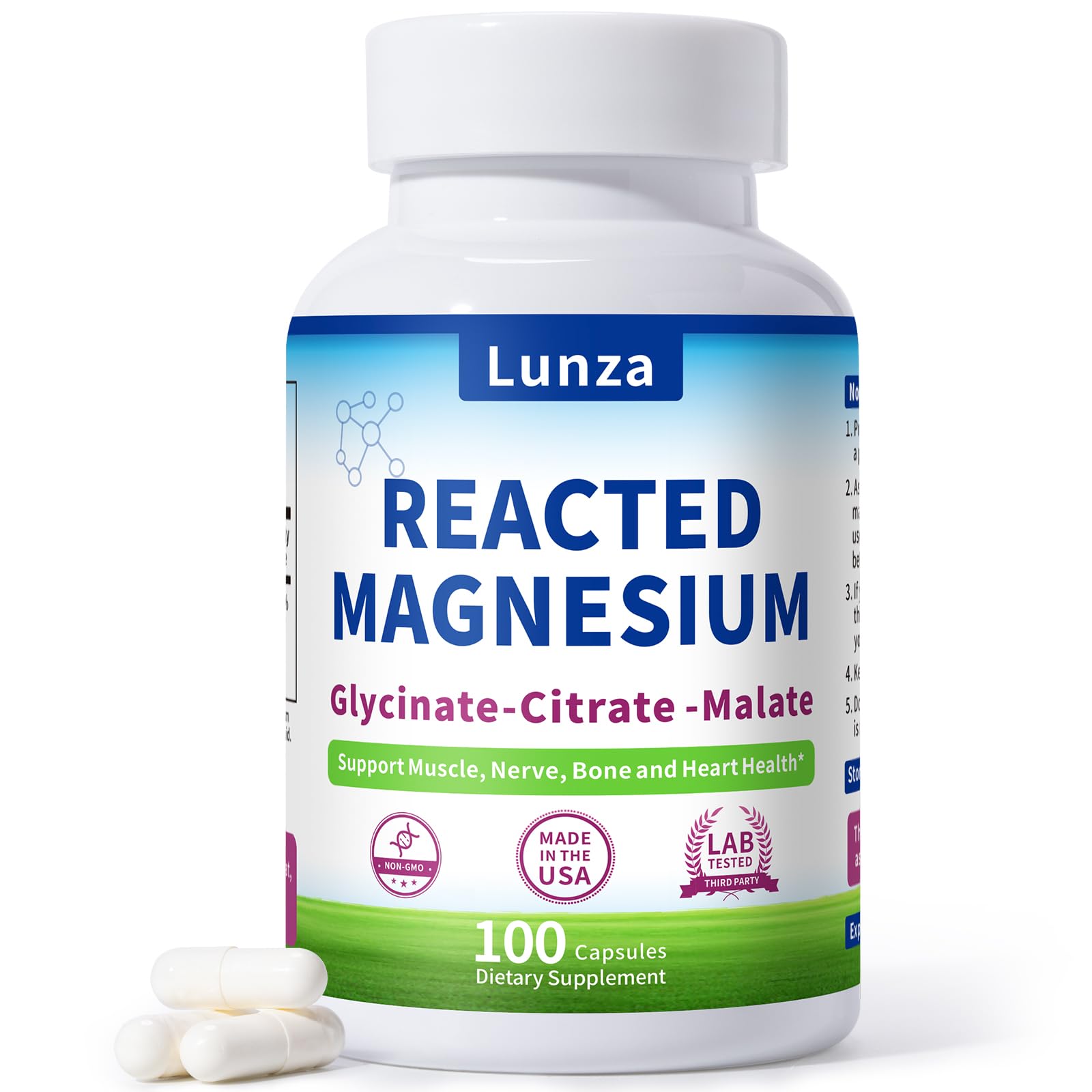 Want to naturally boost energy, relieve muscle soreness, and improve sleep? We know how frustrating it can be when these discomforts hold you back from performing at your best. Our reactive magnesium tablets is the solution. Unlike other magnesium supplements that can be difficult to absorb or cause digestive discomfort, our Magnesium Complex features chelated magnesium, expertly bound to amino acids for superior bioavailability.With 300 mg of magnesium in three highly bioavailable forms—magnesium glycinate, magnesium malate, and magnesium citrate—this powerful formula supports your body's muscle relaxation, nerve function, energy production, and cardiovascular health. Whether you're an athlete looking to recover faster or simply looking to improve your sleep, triple magnesium complex has you covered. 1. Magnesium glycinate helps you relax, sleep better, and relieve stress 2. Magnesium malate boosts energy and relieves muscle pain 3. Magnesium citrate aids digestion and supports healthy muscle function. Suggested Use: 100 capsules per bottle, providing 50 servings. Take 2 capsules daily, with or without food. Our triple magnesium complex capsules are made with your health in mind—vegan, non-GMO, gluten-free, and free of fillers, artificial ingredients, and preservatives.Purity Guarantee: Our triple magnesium complex is vegan, non-GMO, gluten-free, and free from fillers, artificial ingredients, and preservatives, ensuring you get only the purest, most effective formula. Maximum Absorption Premium Ingredients: Unlike other magnesium complex supplement that may be hard to absorb or cause digestive issues, our Magnesium Complex uses chelated magnesium, bound to amino acids for maximum bioavailability. Gentle on your stomach and free from less effective magnesium oxide, this formula delivers optimal support for your body. Promotes Heart Health Boosts Energy: Magnesium, especially magnesium malate, acts as a cofactor required for many enzymatic reactions.Reacted magnesium supplement supports cardiovascular health while enhancing cellular energy production, helping fuel your body with the nutrients it needs for optimal performance. Muscle Recovery Relaxation: Experience complete muscle support with our magnesium triple complex. Each serving delivers 300mg of magnesium in three powerful forms: glycinate, malate, and citrate—to help ease soreness, reduce cramps, and promote muscle relaxation. Perfect for post-workout recovery and restoring your energy, so you can get back to doing what you love. Promotes Restful Sleep Stress Relief: This reacted magnesium helps improve sleep quality, helping you fall into a deeper, more restful sleep, ideal for a nighttime wind-down.