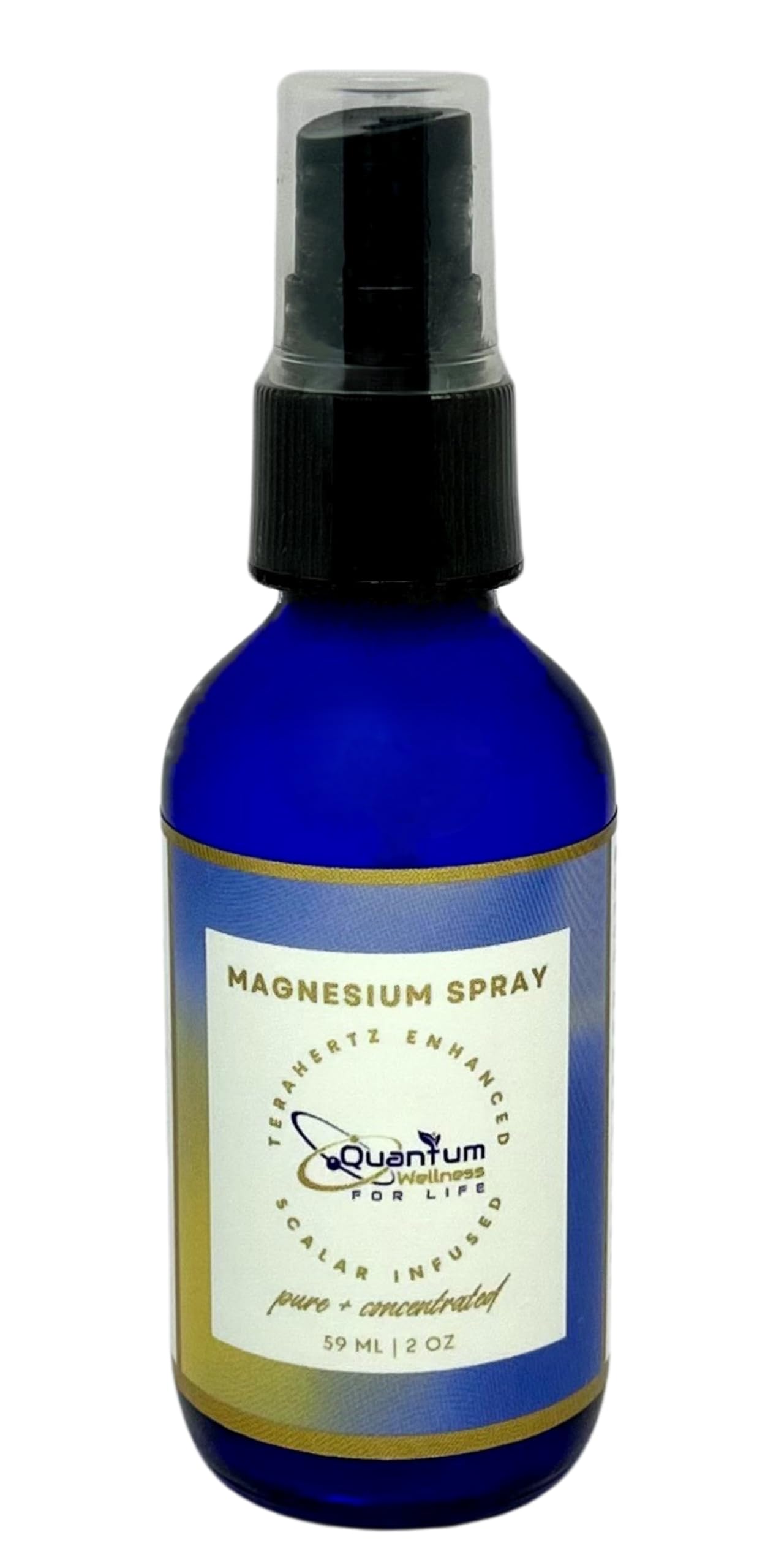 Our Magnesium Spray is a convenient and effective way to replenish your body with this essential mineral, offering natural relief from pain, cramps, and muscle tension. Magnesium plays a vital role in over 300 enzymatic reactions, supporting muscle and nerve function, energy production, bone health, and heart health. It also helps reduce stress and promote relaxation, making it perfect for relieving discomfort and improving sleep quality. Simply spritz it on stiff or painful areas, or spray on the soles of your feet to encourage more restful sleep. This spray is designed for fast absorption through the skin, bypassing the digestive system for maximum benefit. The protective blue glass bottle helps preserve the quality of the product, ensuring long-lasting freshness. Our final product is infused with scalar energy and then enhanced with terahertz frequency. Enhanced with the benefits of scalar energy, this spray helps improve your overall well-being by promoting balance and harmony in your body's energy field. Scalar energy is believed to help reduce stress, improve circulation, and enhance cellular function, supporting optimal health and relaxation. Enhance your well-being and experience natural pain and cramp relief with this advanced topical magnesium solution. Made in the USA.