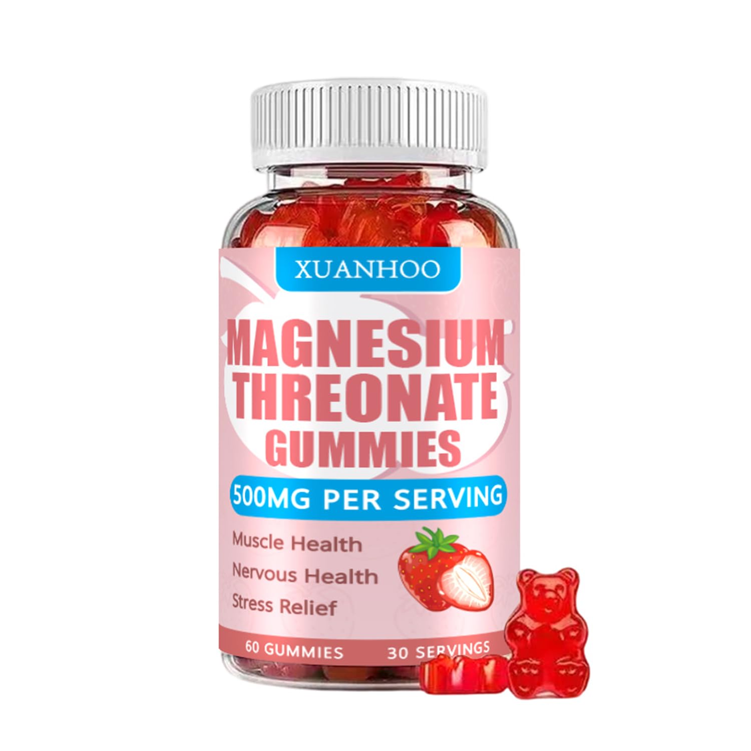 Magnesium Threonate Gummies Magnesium Supplement Strawberry Flavor 60Gummies 250mg Magnesium per Gummy Muscle & Nerve Health Stress Relief