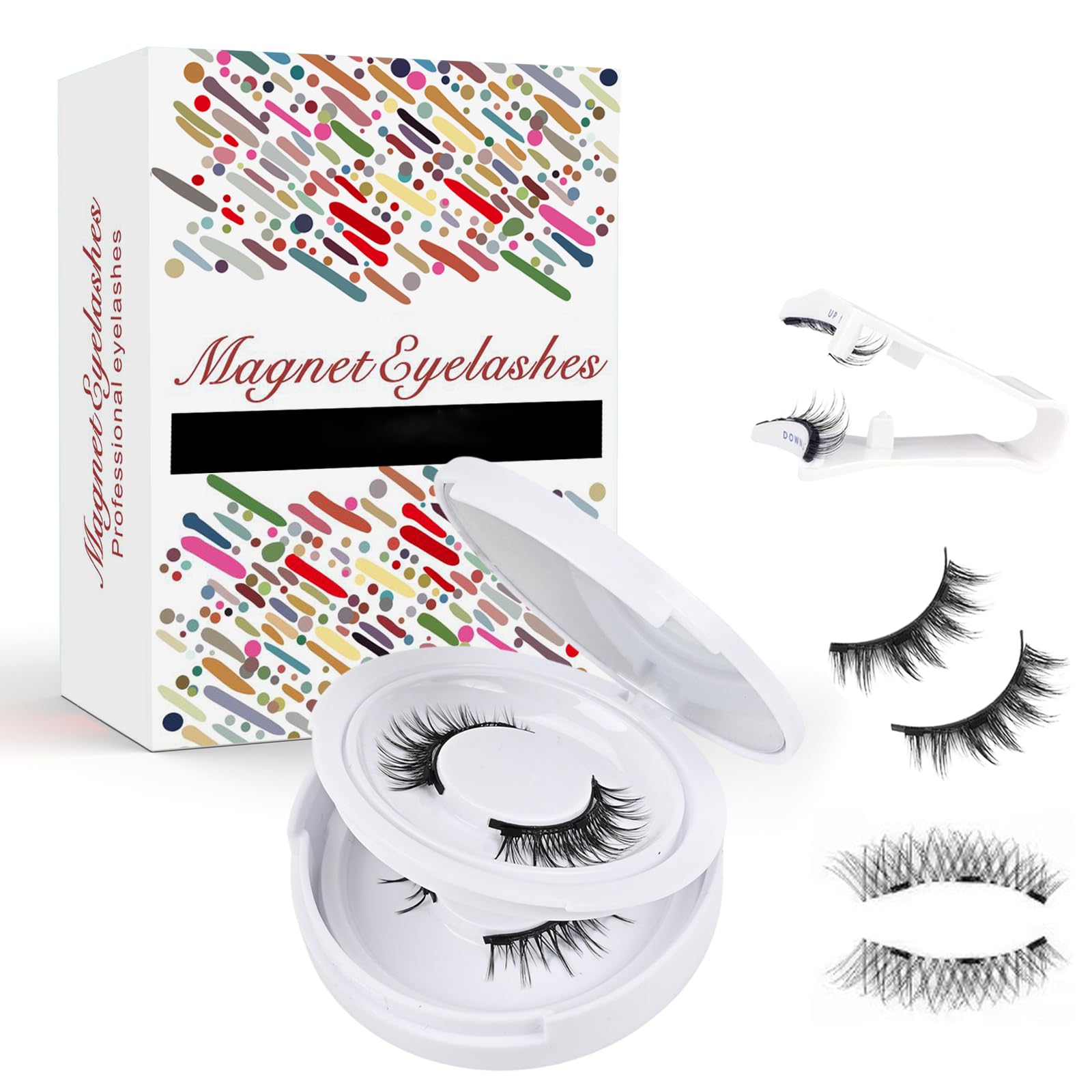 Complete Kit: Our magnetic eyelashes natural look includes 2 pairs of magnetic eyelashes and 1 magnetic eyelash curler, wearing instructions,reusable upper and lower eyelashes, easy-to-place eyelash tools, and mini storage box for easy on-the-go use. Reusable Design: Enjoy the convenience of easy application and removal with our glue free, liner-free, reusable magnetic lashes. These durable, waterproof lashes are designed for repeated use. Double Magnets: Our magnetic eyelashes with applicator take just 3 seconds to put on or remove, with magnets contoured on each lash tab ensuring a perfect fit along the lash line for an accurate, secure connection. Ensures a strong and long-lasting hold for a flawless, confident look. Natural Comfort: Our magnetic lashes fit most eye shapes and it won't harm your natural lashes. Innovative eyelash applicator that enhance your beauty with natural magnetic eyelashes, enjoy beautiful eyelashes all day long that enhance your eyes without looking fake. Magnetic Eyelashes: Our magnetic lashes no glue required, easily applied and removed in seconds. A reusable, realistic lash that creates a lush, natural look, glue-free magnetic lashes are safe, fit over your eyes to make them look bright and attractive.You may receive products with old packaging while our upgrade is in progress.