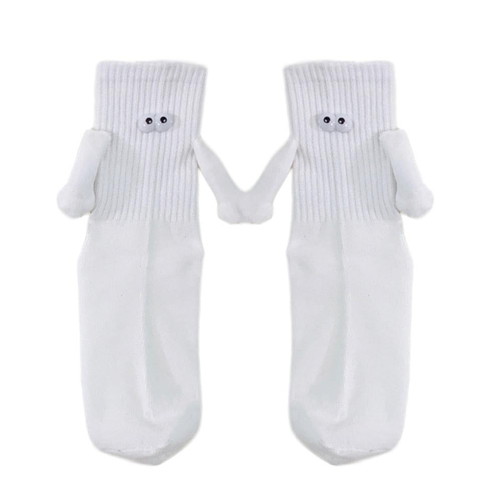 Magnetic Suction 3D Doll Couple Socks Funny Crazy Novelty Socks for Women Men Cute Casual Couple Holding Hands Socks Gifts 1 Pair White