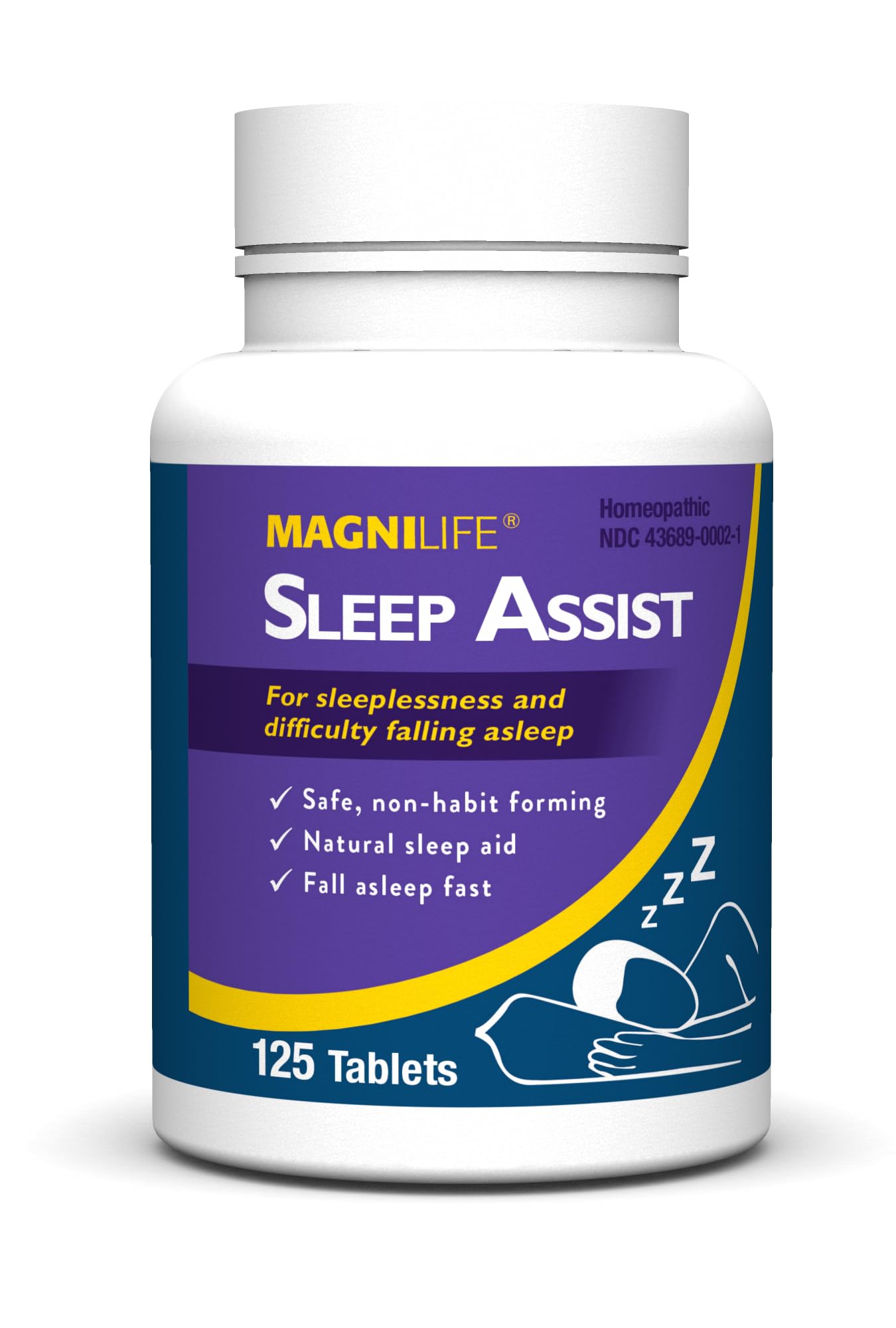 MagniLife Sleep Aid, Homeopathic, Melatonin-Free Sleep Assist Tablets, 125 Count, Natural, Non-Habit Forming, Helps with Sleeplessness and Trouble Falling Asleep, Dissolves Quickly, Fast Acting