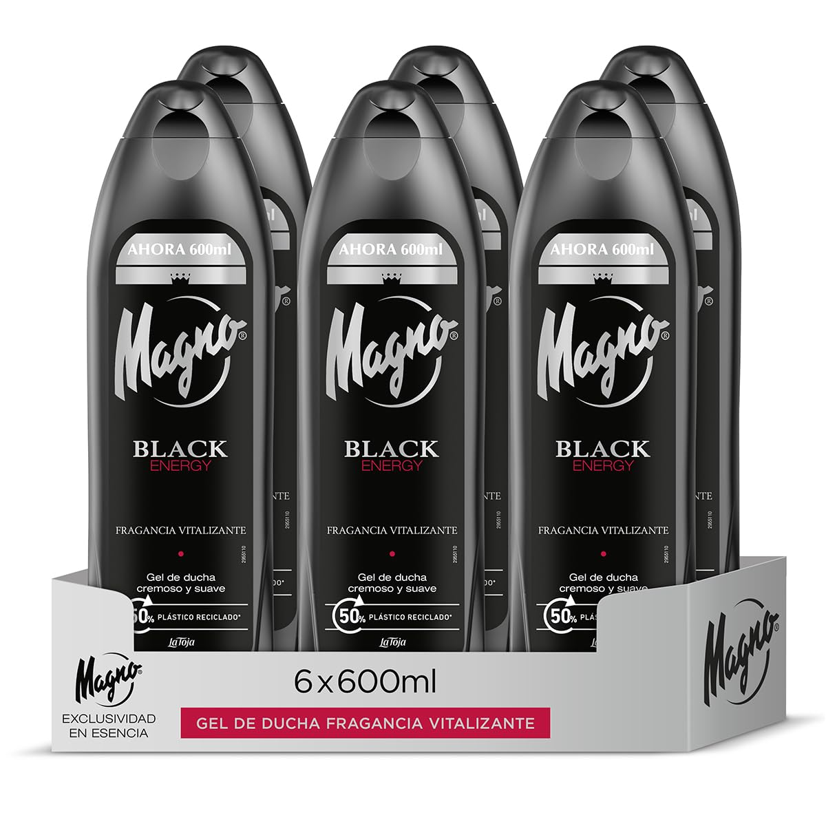 Magno - Gel douche Black Energy - Pack de 6 de 600 ml (3600 ml) - Parfum énergisant aux notes d'agrumes