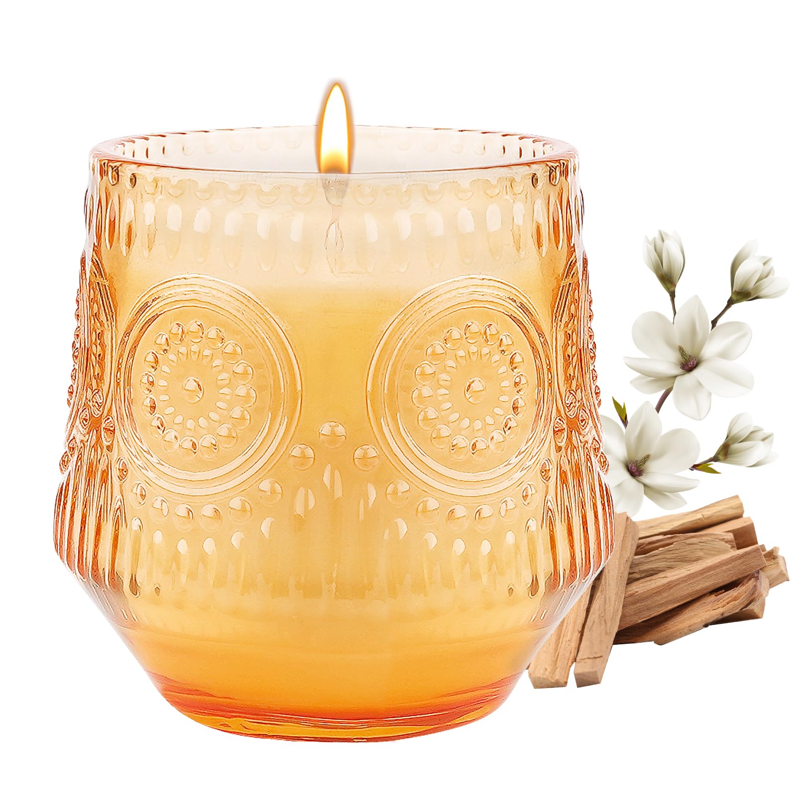 Housed in a luxury glass jar, showcasing a sleek and modern aesthetic, and emit sophisticated scent.