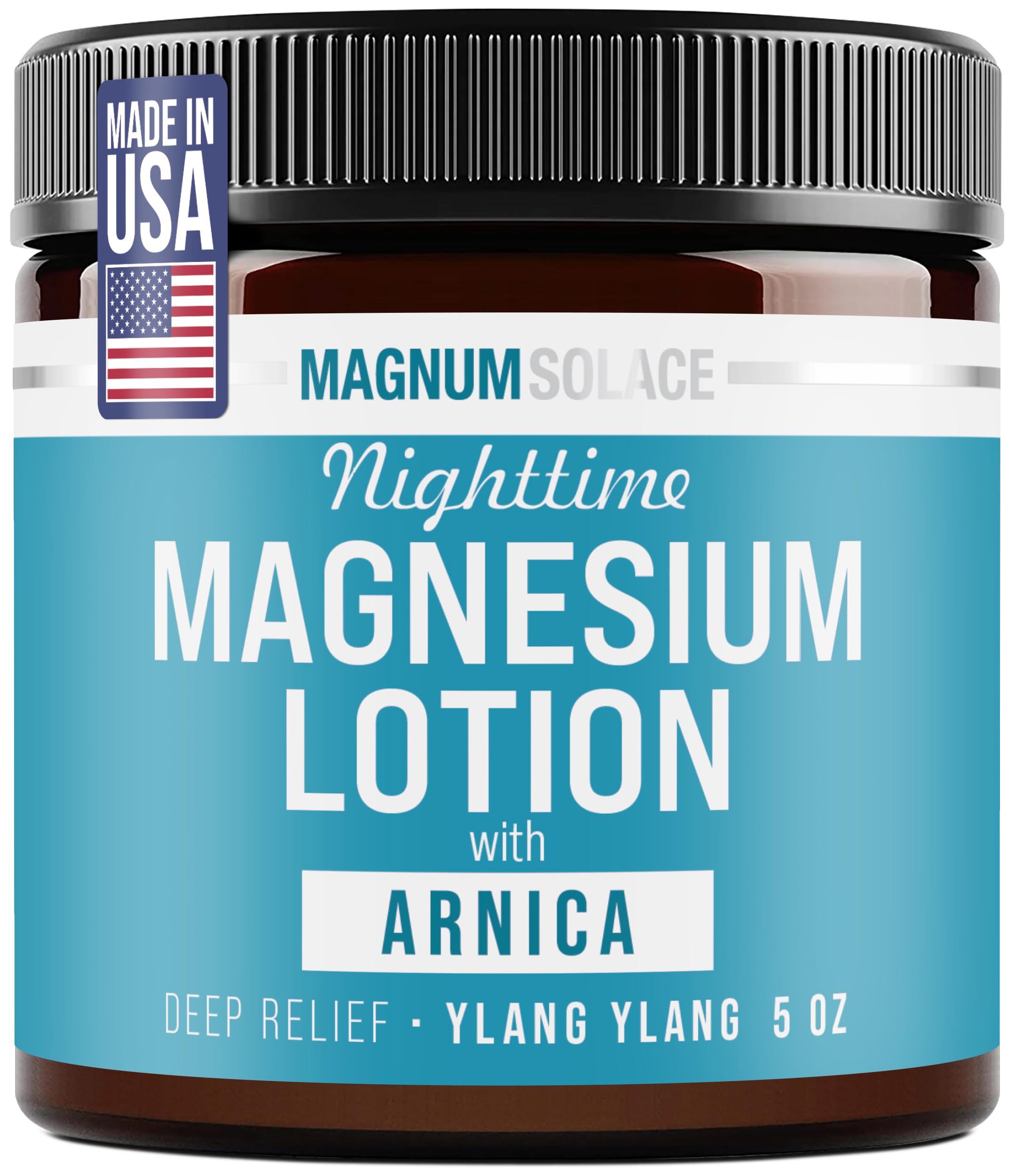 Magnum Solace Nighttime Magnesium Lotion with Arnica Soothing Relief & Relaxation Highly Concentrated Magnesium for Muscles & Joints Apply to Legs or Feet Before Bed Skin-Friendly