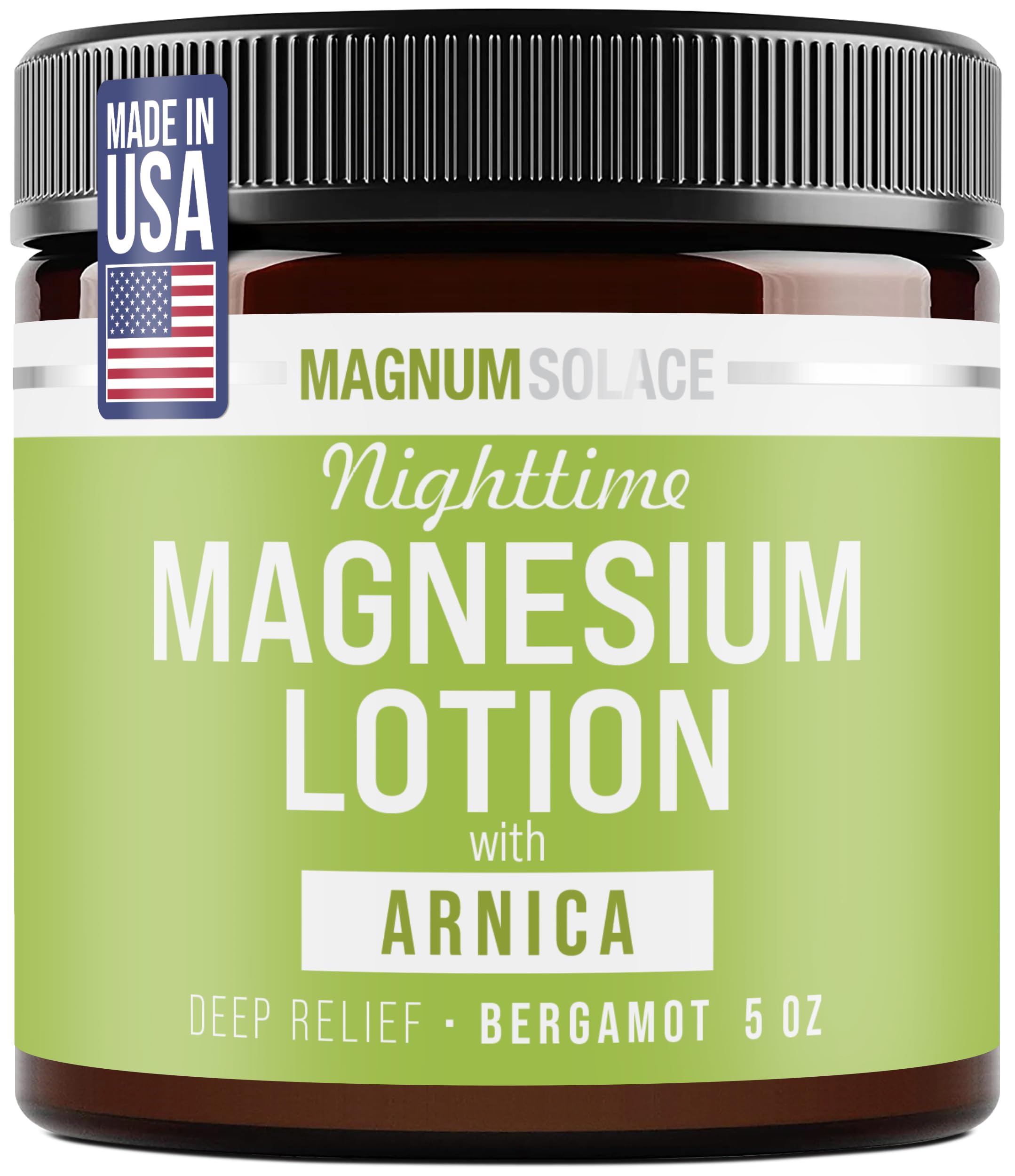 Magnum Solace Nighttime Magnesium Lotion with Arnica Soothing Relief & Relaxation Highly Concentrated Magnesium for Muscles & Joints Apply to Legs or Feet Before Bed Skin-Friendly