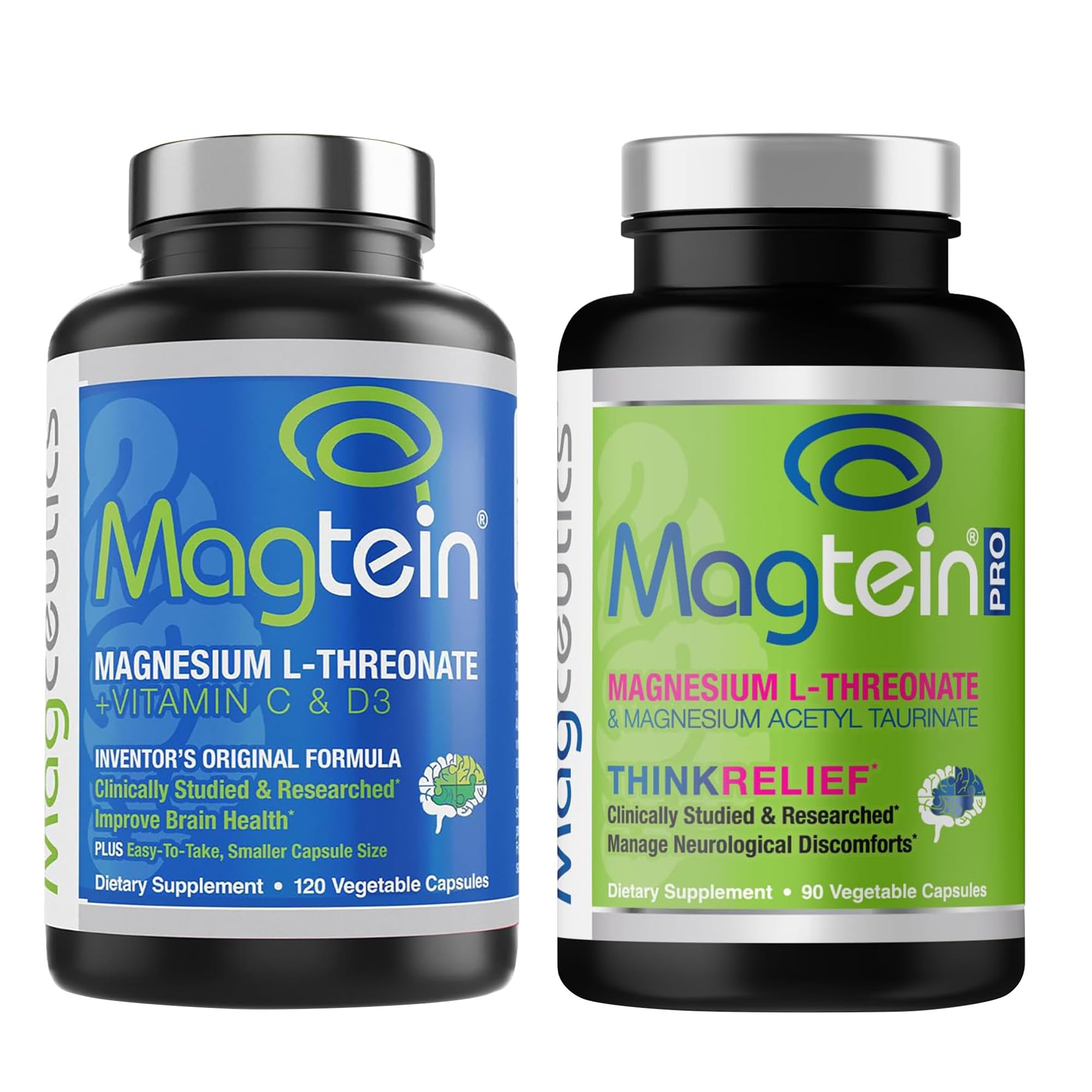 Magtein Magnesium L-Threonate 120 Capsule and Magceutics MagteinPRO 90 Capsules - Bundle