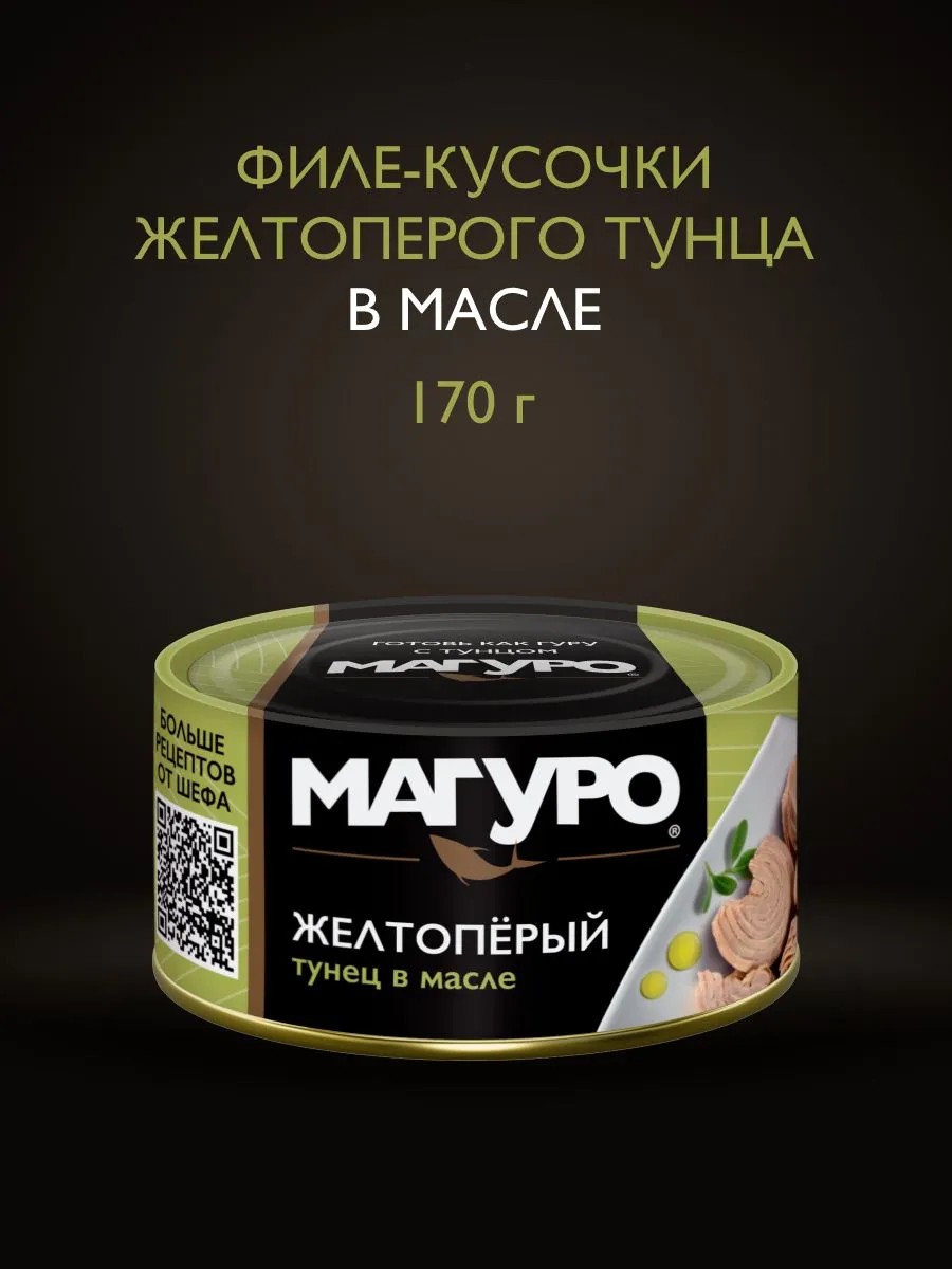 Тунец Магуро желтоперый в масле, филе-кусочки, отобранные вручную ломтики редкого желтоперого тунца, сочетающие в себе идеальный баланс вкуса и пользы. Масло подчеркивает деликатный вкус тунца, позволяя домашним блюдам обрести ресторанную изысканность. Вкусные рыбные консервы премиум класса готовы к употреблению. Отборный желтоперый тунец отличается своей плотной, мясистой структурой и отсутствием характерного рыбного запаха. Содержит много белка, жирные кислоты Омега-3, богат селеном, калием и микроэлементами и ваитаминами. Эталонный продукт для тех, кто выбирает осознанный подход к здоровому питанию. Рыба выловлена в экологически чистых районах и проходит строгий контроль качества на производствах. В составе всего три ингредиента: тунец, масло растительное и щепотка соли. Высокобелковый продукт подходит для флекситарианства.