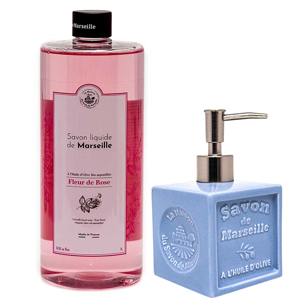Brand: French liquid soap, made in the heart of Provence by Maison du Savon. They are known worldwide for nice scents with every wash while providing important antioxidants to keep your skin clean and healthy. Product: Every wash leaves your hands with a delicate rose scent. The rose scent is a soft, fresh and refined scent with extracts of rose petals. A floral scent with notes of rose and lily. This soap is saponified with organic olive oil, which is rich in vital antioxidants, including Omega 9, which stimulates cella activity and prevents skin aging. This makes olive soap ideal for washing hands and protecting the skin. Comes with a stylish ceramic soap dispenser that can hold 300ml of liquid soap. Ceramics work well in a modern or vintage bath or kitchen theme. Additionally, the ceramic and cube design makes the dispenser compact and less likely to slide around your sink or countertop compared to other materials due to the non-slip base. This liquid soap is made with organic essential oils such as olive oil and coconut oil to care for and protect the skin. The liquid soap is manufactured with a sustainable development approach. The light blue lavender color especially fits in a modern bathroom with the aluminum pump head. This ceramic soap dispenser is suitable for bright colorful themes in your bathroom or kitchen and fills colors such as red and orange.✓ Light blue soap dispenser: the light blue lavender color looks great especially with the aluminum pump head. This ceramic soap dispenser is suitable for bright colorful themes in your bathroom or kitchen and fills colors such as red and orange. ✓ Savon de Marseille soap – French liquid soap, made in the heart of Provence from Maison du Savon. They are known worldwide for nice scents with every wash while providing important antioxidants to keep your skin clean and healthy. ✓ 300ml Ceramic Soap Dispenser – Ceramic works well in a modern or vintage bath or kitchen theme. Additionally, the ceramic and cube design makes the dispenser compact and less likely to slide around your sink or countertop compared to other materials due to the non-slip base. ✓ Olive oil soap – this soap is saponified with organic olive oil, which is rich in vital antioxidants, including Omega 9, which stimulates cellulite activity and prevents skin aging. This makes olive soap ideal for washing hands and protecting the skin. ✓ Rose Soap: Every time you wash it, it leaves your hands with a delicate rose scent. The rose scent is a soft, fresh and refined scent with extracts of rose petals. A floral scent with notes of rose and lily.Maison Du Savon De Marseille vloeibare zeep met zeepdispenser van keramiek, 1 liter navulverpakking en dispenser voor 300 ml Merk: Franse vloeibare zeep, vervaardigd in het hart van de Provence van Maison du Savon. Ze zijn wereldwijd bekend om leuke geuren bij elke wasbeurt en bieden tegelijkertijd belangrijke antioxidanten om je huid schoon en gezond te houden. Product: Elke wasbeurt laat je handen een delicate rozengeur achter. De rozengeur is een zachte, frisse en geraffineerde geur met extracten van rozenblaadjes. Een bloemige geur met noten van roos en lelietjes. Deze zeep is verzeepd met biologische olijfolie, dat rijk is aan vitale antioxidanten, inclusief Omega 9, dat de cellaactiviteit stimuleert en de veroudering van de huid voorkomt. Daardoor is olijfzeep ideaal voor het handen wassen en ter bescherming van de huid. Wordt geleverd met een stijlvolle keramische zeepdispenser die 300 ml vloeibare zeep kan opnemen. Keramiek werkt goed in een modern of vintage bad- of keukenthema. Bovendien maakt het keramische en kubusdesign de dispenser compact en glijdt hij minder waarschijnlijk dat hij in vergelijking met andere materialen door de antislip bodem om je gootsteen of werkblad glijdt. Deze vloeibare zeep wordt gemaakt met biologische etherische oliën zoals olijfolie en kokosolie om de huid te verzorgen en te beschermen. De vloeibare zeep wordt vervaardigd met een aanpak voor duurzame ontwikkeling. De lichtblauwe lavendelkleur past vooral in een moderne badkamer met de aluminium pompkop. Deze keramische zeepdispenser is geschikt voor heldere kleurrijke thema's in je badkamer of keuken en vult kleuren zoals rood en oranje.✓ Lichtblauwe zeepdispenser: de lichtblauwe lavendelkleur ziet er vooral met de aluminium pompkop geweldig uit. Deze keramische zeepdispenser is geschikt voor heldere kleurrijke thema's in je badkamer of keuken en vult kleuren zoals rood en oranje. ✓ Savon de Marseille zeep – Franse vloeibare zeep, gemaakt in het hart van de Provence van Maison du Savon. Ze zijn wereldwijd bekend om leuke geuren bij elke wasbeurt en bieden tegelijkertijd belangrijke antioxidanten om je huid schoon en gezond te houden. ✓ 300 ml keramische zeepdispenser – keramiek werkt goed in een modern of vintage bad- of keukenthema. Bovendien maakt het keramische en kubusdesign de dispenser compact en glijdt hij minder waarschijnlijk dat hij in vergelijking met andere materialen door de antislip bodem om je gootsteen of werkblad glijdt. ✓ Olijfolie zeep – deze zeep is verzeepd met biologische olijfolie, dat rijk is aan vitale antioxidanten, inclusief Omega 9, die de cellulactiviteit stimuleert en de veroudering van de huid voorkomt. Daardoor is olijfzeep ideaal voor het handen wassen en ter bescherming van de huid. ✓ Rozezeep: elke keer wassen laat je handen een delicate rozengeur achter. De rozengeur is een zachte, frisse en geraffineerde geur met extracten van rozenblaadjes. Een bloemige geur met noten van roos en lelietjes.