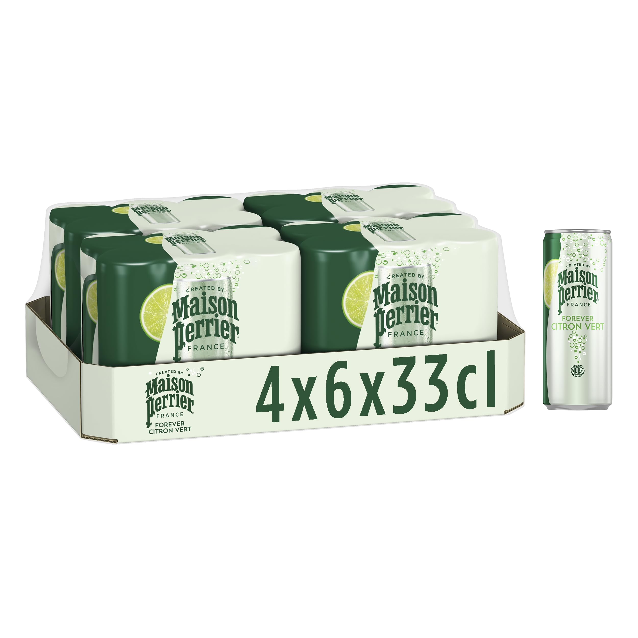 : Maison Perrier is a new way to express the inimitable style of Perrier. Imagined by the creators of Perrier, Maison Perrier offers a new range of drinks to take you to new horizons. A new experience, more irresistible than ever! The intensity of the bubbles, a delicious lime flavor, and nothing else! New: a sparkling water-based drink. Ingredients: Carbonated water (99.9 ), natural lemon and lime flavoring.A wide range of refreshing flavors. All the freshness of MAISON PERRIER combined with subtle, natural aromas. No artificial sweeteners.Description du produit Maison Perrier est une nouvelle façon d'exprimer le style inimitable de Perrier. Imaginée par les créateurs de Perrier, Maison Perrier propose une nouvelle gamme de boissons pour vous emmener vers de nouveaux horizons. Une nouvelle expérience, plus irrésistible que jamais ! L'intensité des bulles, un délicieux parfum de citron vert et rien d'autre ! Nouveau : boisson à base d'eau gazéifiée. Ingrédients Ingrédients : eau gazéifiée (99,9 ), arôme naturel de citron et de citron vert.Une large gamme de saveurs rafraichissantes. Toute la fraîcheur de MAISON PERRIER combinée à des arômes subtils et naturels. Sans édulcorant.MAISON PERRIER FOREVER Boisson Gazeuse Aromatisée Citron Vert - 4 packs de 6x33cl