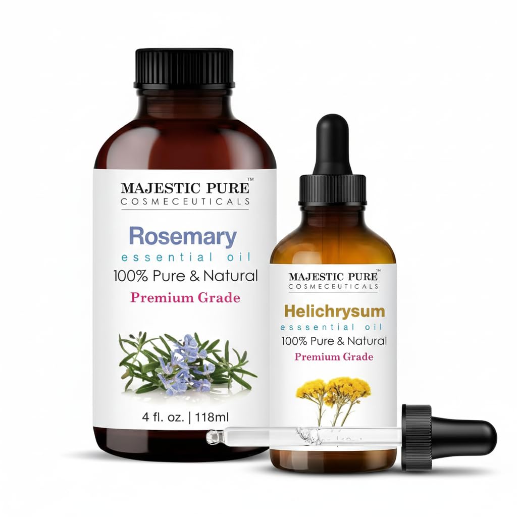 MAJESTIC PURE Helichrysum (1 Fl Oz) and Rosemary (4 Fl Oz) Essential Oil Bundle