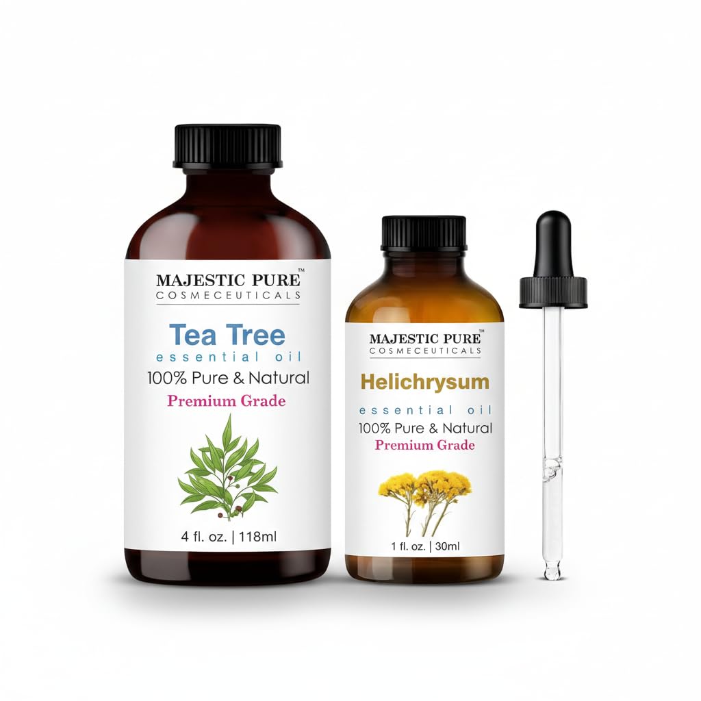 MAJESTIC PURE Helichrysum (1 Fl Oz) and Tea Tree (4 Fl Oz) Essential Oil Bundle