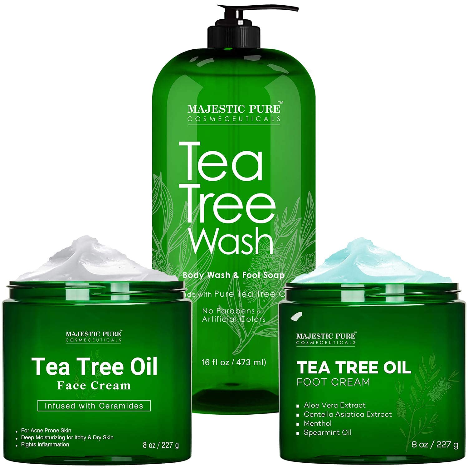 MAJESTIC PURE Tea Tree Body Wash Tea Tree Foot Cream & Tree Tea Face Cream Bundle
