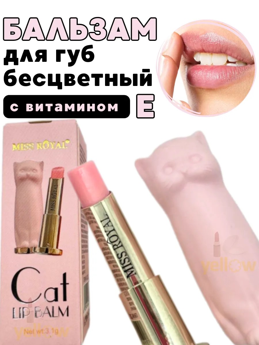 Прозрачная гигиеническая помада для губ увлажняющая в футляре Кошка.