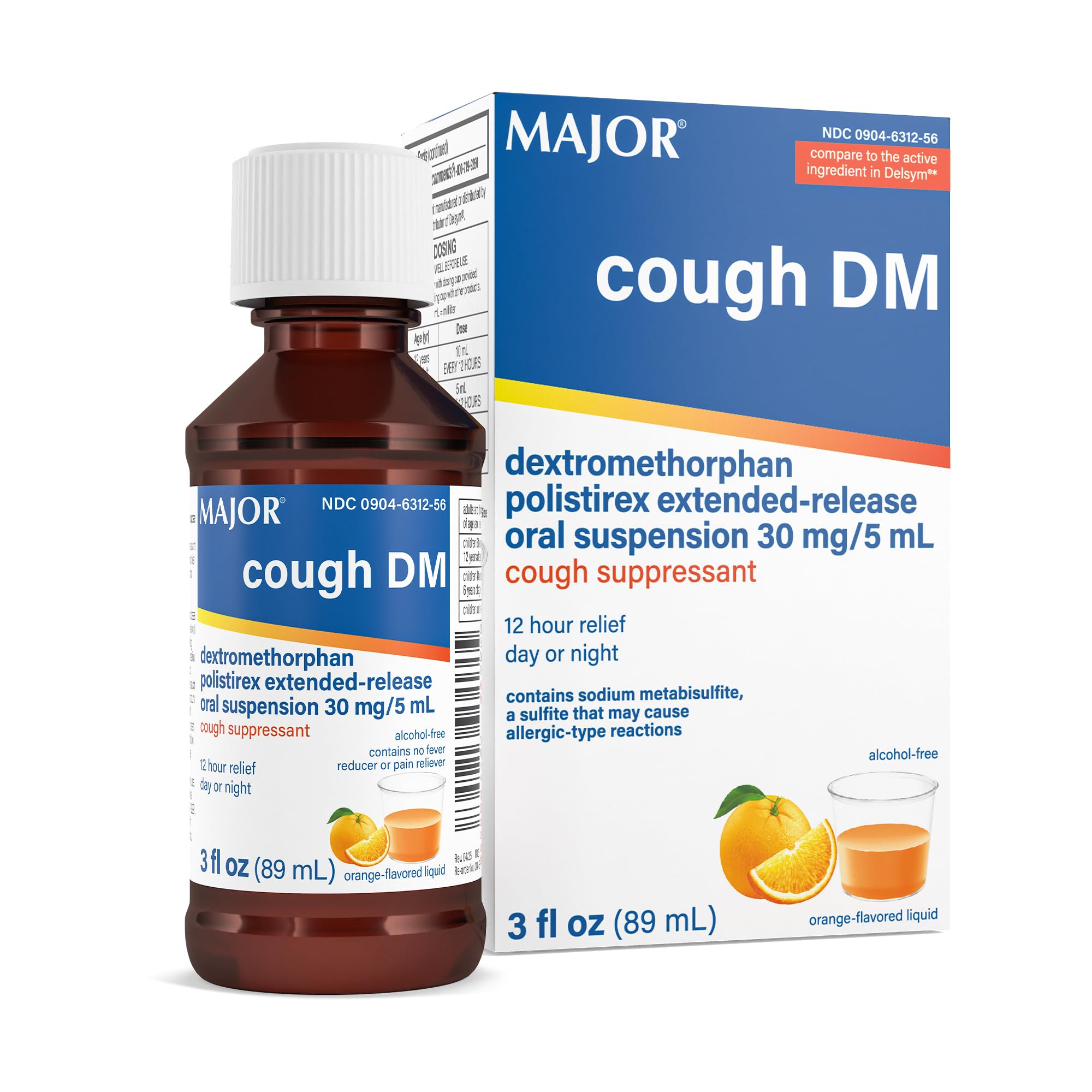 MAJOR PHARMACEUTICALS - At Major Pharmaceuticals, we believe wellness should be accessible to everyone. We pride ourselves on our legacy of delivering affordable, high-quality OTC and vitamin supplements, trusted by healthcare professionals and pharmacies across 50 therapeutic categories. QUALITY FORMUALTION - We maintain high standards of care through strict regulatory compliance to deliver a carefully formulated cough suppressant. Providing temporary relief from cough due to the common cold. HOW TO USE - Adults and children 12 years and older, take 10 mL every 12 hours. Children 6 to 11 years, take 5 mL every 12 hours. Children 4 to 5 years, take 2.5 mL every 12 hours. Measure with the dosing cup included only. ACTIVE INGREDIENTS - Each dose contains 30 mg of orange-flavored dextromethorphan polistirex, an extended-release cough suppressant that helps relieve the impulse to cough, to help you get to sleep. EXTENDED-RELEASE COUGH SUPPRESSANT - Major Cough DM offers temporary cough relief due to minor bronchial irritation that may occur due to the common cold or inhaled irritants. Providing up to 12 hours of relief, during the day or night.