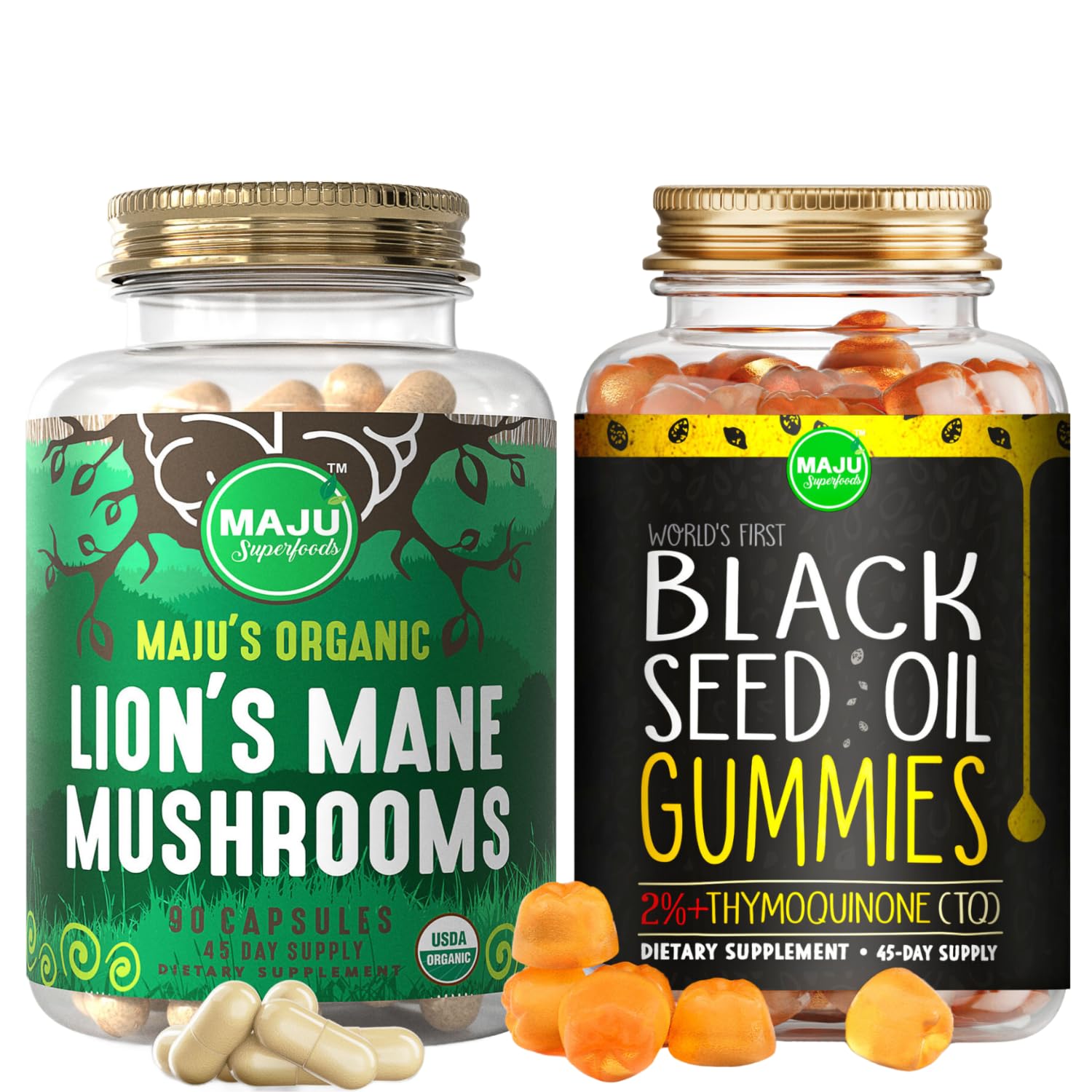 Maju Superfoods Organic Lion's Mane Capsules and Black Seed Oil Gummies Bundle