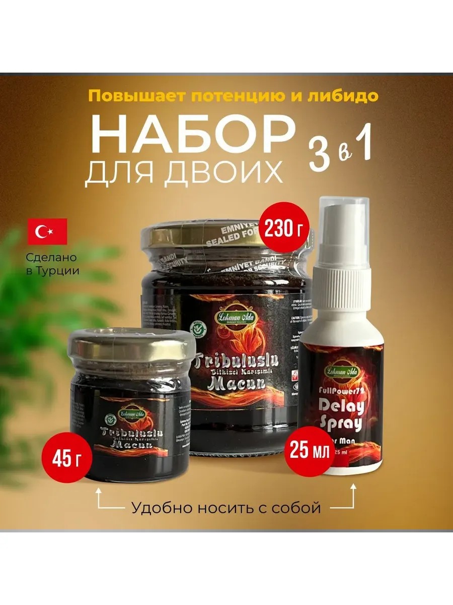 | Composition | spray for prolonging sexual intercourse do spray - 1 pc; honey for potency 42 g; paste for potency large jar 230 g |