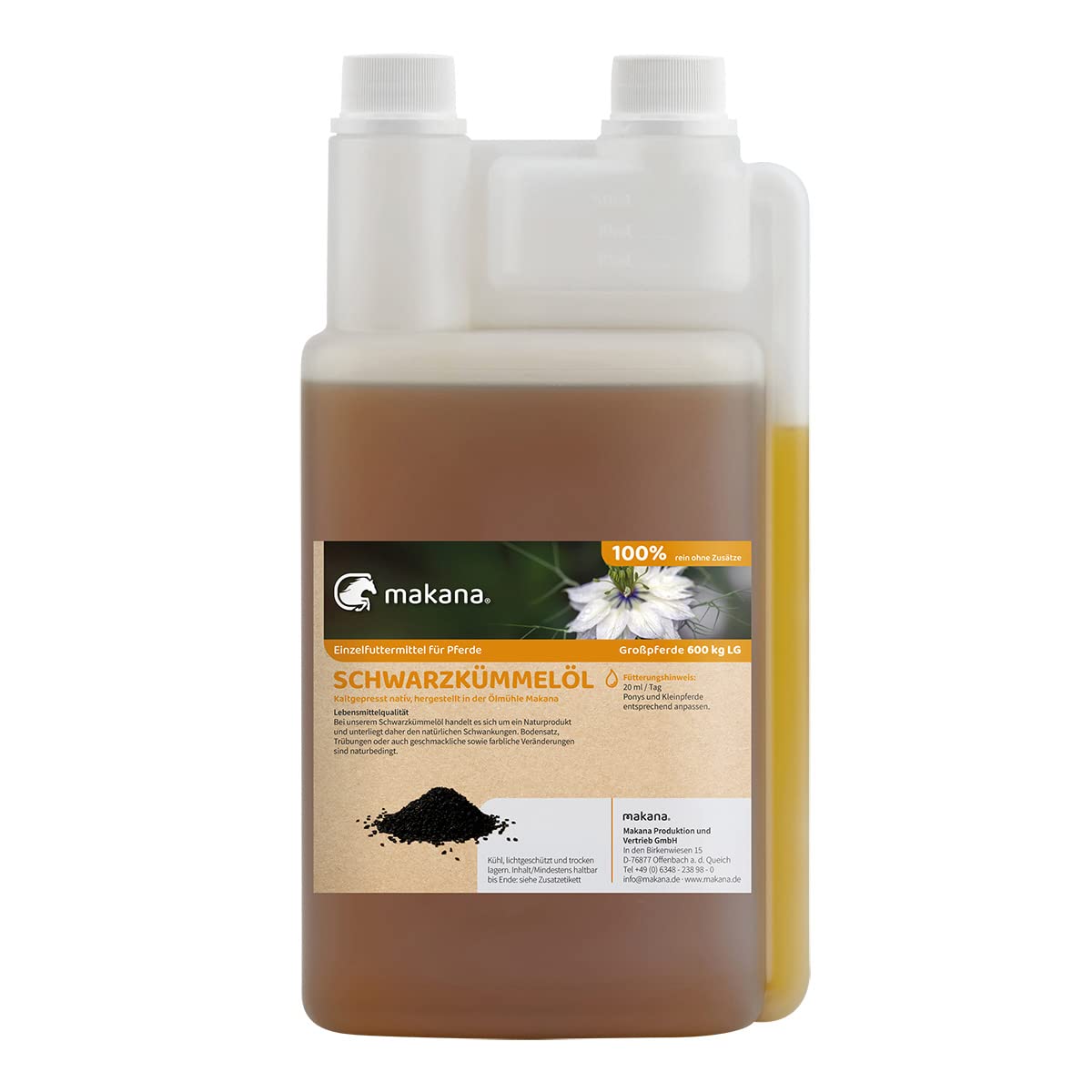 Makana Cold Pressed Black Seed Oil for Animals 100% Pure 1000 ml Polyethylene Dosing Bottle (1 x 1 L)