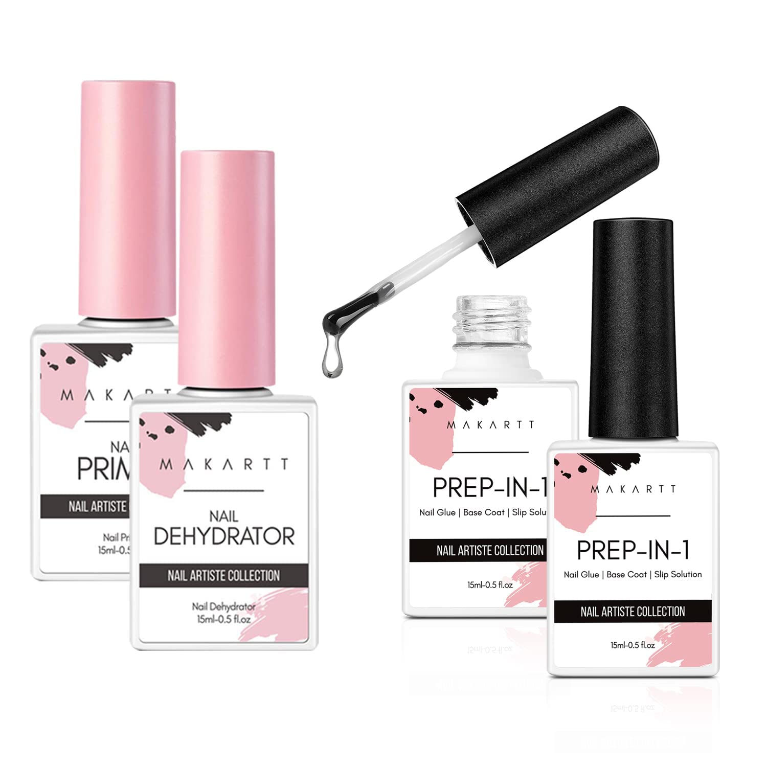 Makartt Nail Primer Natural Nail Dehydrator Primer for Acrylic Nails Gel Polish Bundle UV Nail Glue Gel for Fake Nails(Curing Needed) 3 in 1 Super Strong Acrylic Nails Glue