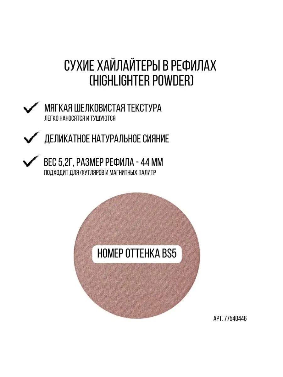 Мягкая шелковистая текстура перламутровых румян MAKE UP SECRET легко набирается на кисть и растушевывается на коже, сохраняя высокую стойкость. С помощью перламутровых румян можно создать эффект металлического блеска на коже. Советуем наносить продукт натуральной кистью для румян и сухой коррекции. Вес 5,2г, размер рефилат 44 мм. Подходящие магнитные палиты АРТИКУЛ: 53911099, 53981931, 53982167. Подходящие футляры для рефилов АРТИКУЛ:71878413 (на 5 рефилов), 71864767 (на 2 рефила).