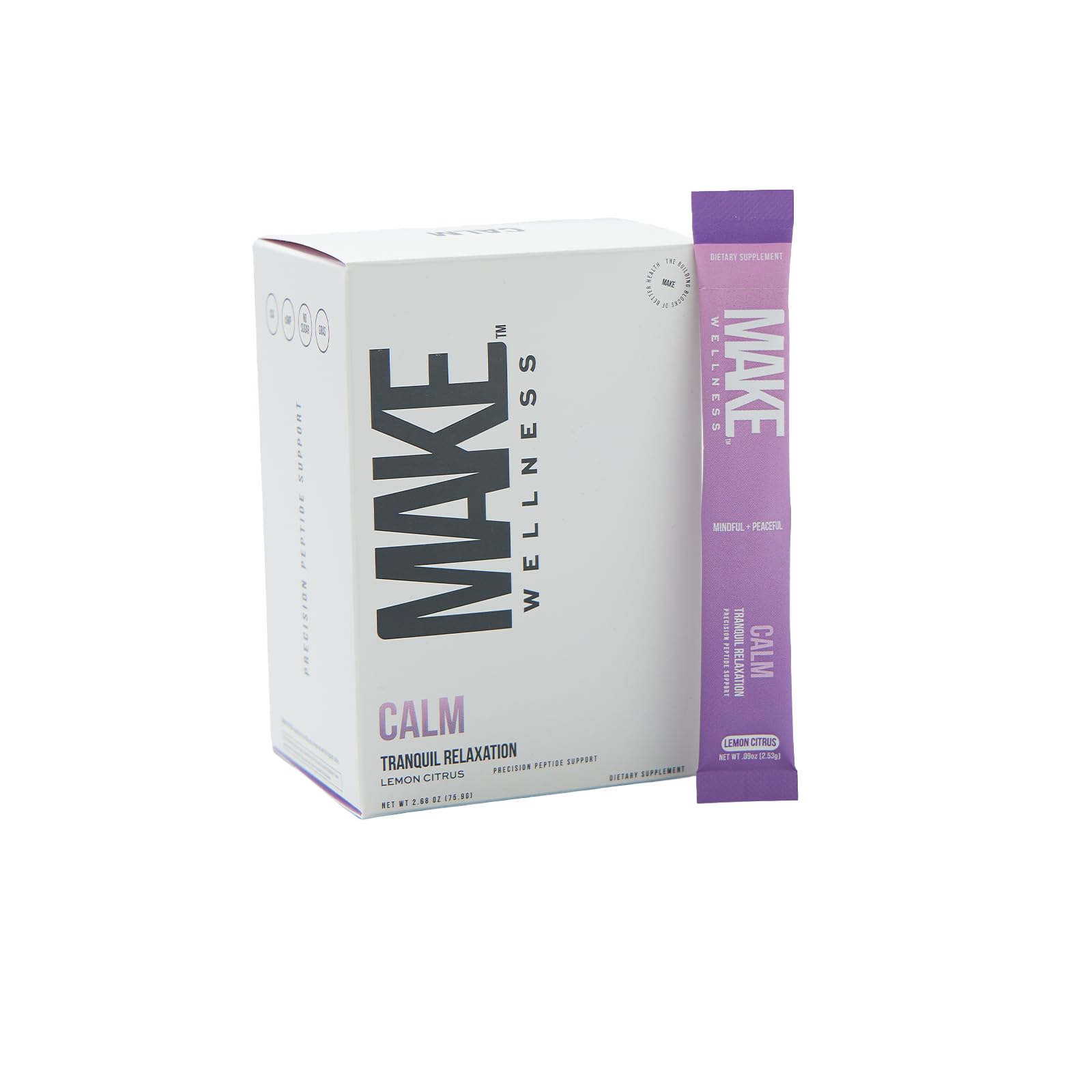 Make Wellness Calm Supplement | 30 Servings | Precision Peptide Support with Ashwagandha GABA and L-Theanine | Lemon Citrus Flavor | On-The-Go Stick Packs