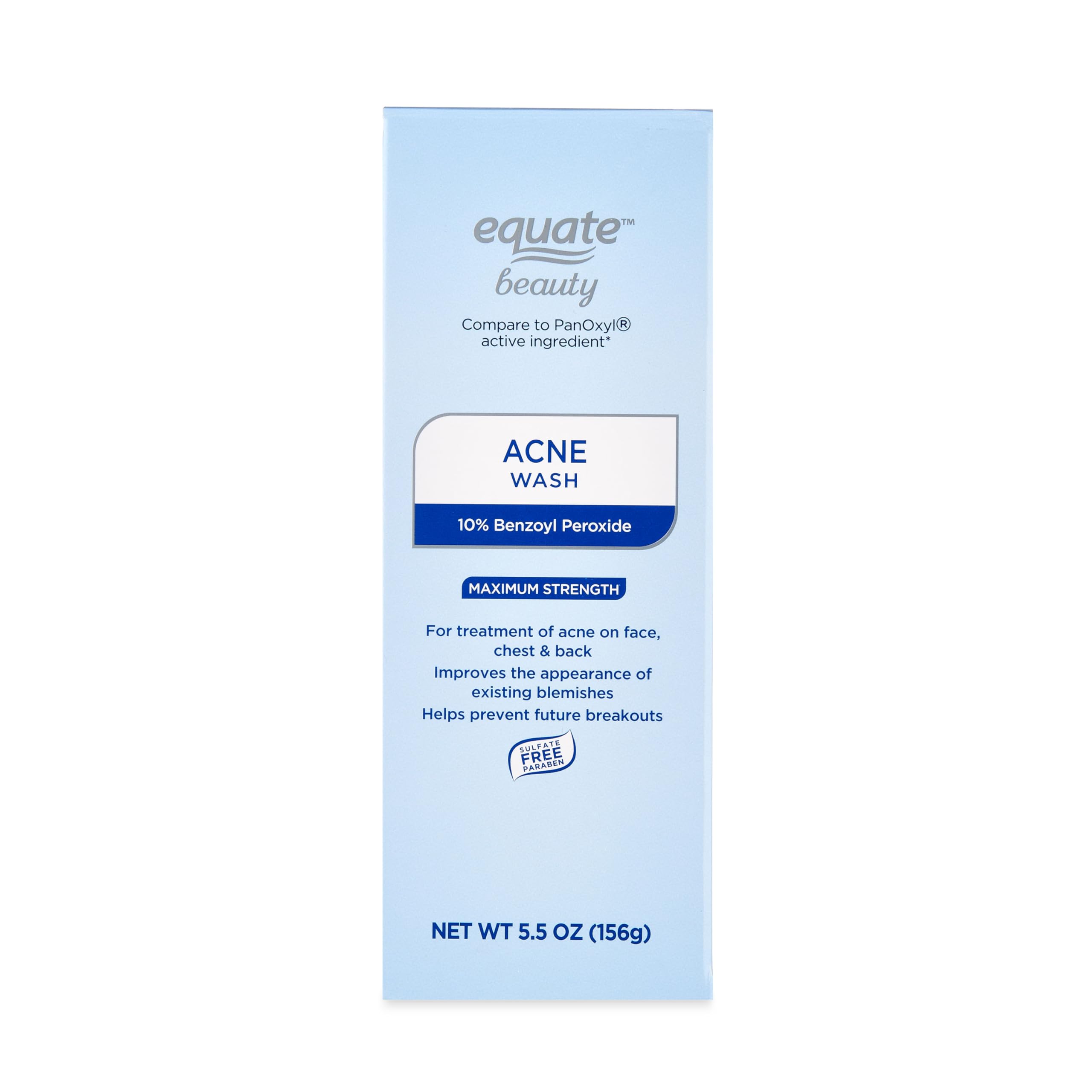 Equate Beauty Maximum Strength Acne Wash, 5.5 oz Contains 10 Benzoyl Peroxide Max strength formula to help keep your skin clear Improves the appearance of existing blemishes and helps prevent future breakouts Can be used for the treatment of acne on face, chest and back Sulfate and paraben free Oily, Combination