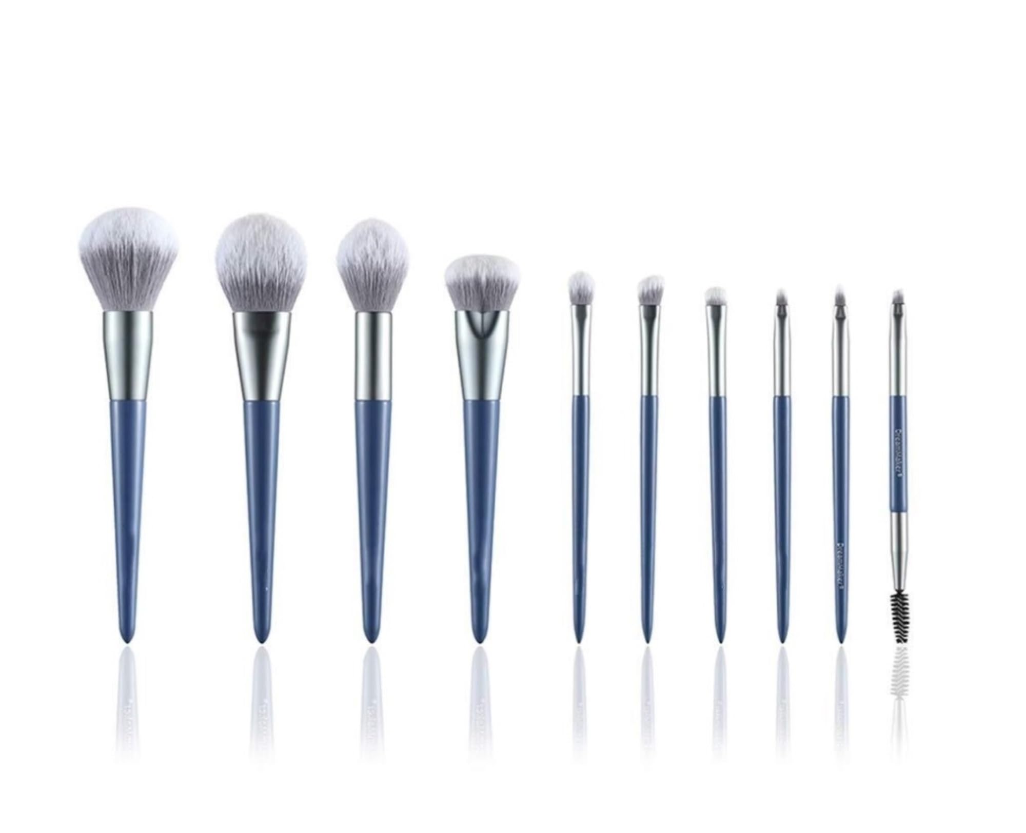fiber Brush: solid wood handle color: blue Quantity: 10 Features: rich and smooth hair, rich powder, strong smudge and natural the cleaning method: 1: After diluting the neutral detergent with warm water, pour it into the scrubbing tray, place the bristles in it, and rub it back and forth 2: Do not wash with hot water, do not soak, if the brush sticks with water, wipe it clean Nursing methods: After wiping with paper towels until it is semi-dry, wrap it with a net cover to avoid the deformation of the brush head. (Do not twist the bristles vigorously, the bristles made by hand are easily deformed and damaged.) Bristles face down, dry in a cool and ventilated place. (Do not use a hair dryer or exposure.) Reminder: Do not wash against the hair, twisting the bristles will cause its structure to become loose or hair loss; Our brushes have exceptional softness for a gentle and even application. Experience the soft and plush feel of these brushes on your skin as they create the perfect makeup look.Brush tube: matt aluminum tube. When cleaning the brush, please clean only the bristles to avoid water contacting the brush head and the handle, because this will loosen over time. Wooden paint brush handle, the brush head is connected to the handle by glue, and the surface is firmly covered with rose gold aluminum plate to prevent the brush and handle from falling off. Thick aluminum tube, die-casting process, seamlessly matches the brush handle, durable, comfortable to wear, durable and not deformed. Makeup brush set with a variety of brushes to suit all different makeup needs. Daily makeup application is simple and convenient.