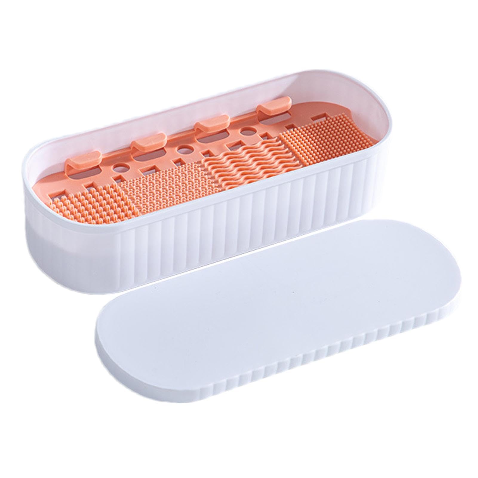 Makeup Brush Cleaner and Dryer - Makeup Sponge Cleaner Storage Box Drying Holder Dustproof Efficient Cleaning Tool Sponge Washer for Enhanced Maintenance Three Generations of White