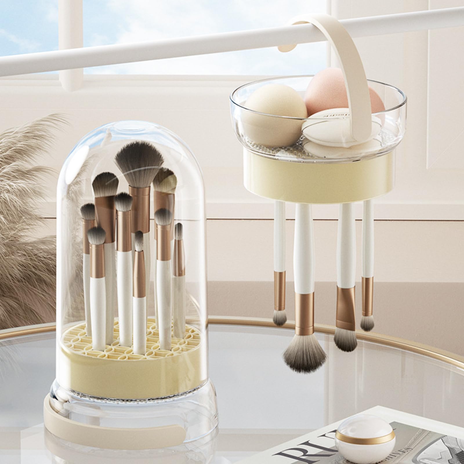 ?Large Capacity Ultra Practical?Large capacity of the brush organizer is super practical,no hand washing,no hair damage,cleaning,drying,storage of a variety of uses.Cleaned for brushes of different sizes and shapes with makeup brush cleaner solution,making it easy and quick to clean effectively.Suitable for cleaning various cosmetic brushes and cosmetic sponges,etc. Suitable for personal use on makeup organizer countertop and beauty professional use. ?Easy To Cleaning Dry Storage?Simply pour makeup brush cleaner solution, move the brush gently, rinse, and insert into the bottom hole for drying, and then store the makeup brush. With its clear waterproof and dust-proof cover, our cosmetic organizer storage keeps your brushes tidy and clean. It's easy to use and can also be used as a holder for drying makeup brush of different shapes and sizes. ?Deep Clean Makeup Brush Mat?Featuring three different textures designs, makeup brush cleaner machine help thoroughly clean, this cleaning bowl is suitable for cleaning all kinds of make-up brushes. Scientific partition design, cleaning a deeper layer. Let the sponge and makeup brush have a spa, soft and delicate touch, no damage to the bristles, cleaner than hand washing. ?3 In 1 Makeup Brush Cleaner?The dry makeup brush cleaner designed with Three-dimensional pattern scientific zoning meets the cleaning of different brushes. Inverted design transforms the cleaning bowl into a makeup brush drying rack to prevent deformation. With clear acrylic dust cover, it can be a electric makeup brush cleaner box,beautiful and easy to take out use. It can effectively clean, air-dry, and organize your makeup brushes,sponges and puffs. ?Upgraded Durable Material?Our this makeup brush cleaner mat is made of bottom silicone, gold-plated handle and clear acrylic storage bowl, which is light luxury texture, beautiful and practical. High elastic round hole mesh fixed a number of different specifications of makeup brush holder for storage, which is durable to use, effectively clean your makeup brush without any damaging.