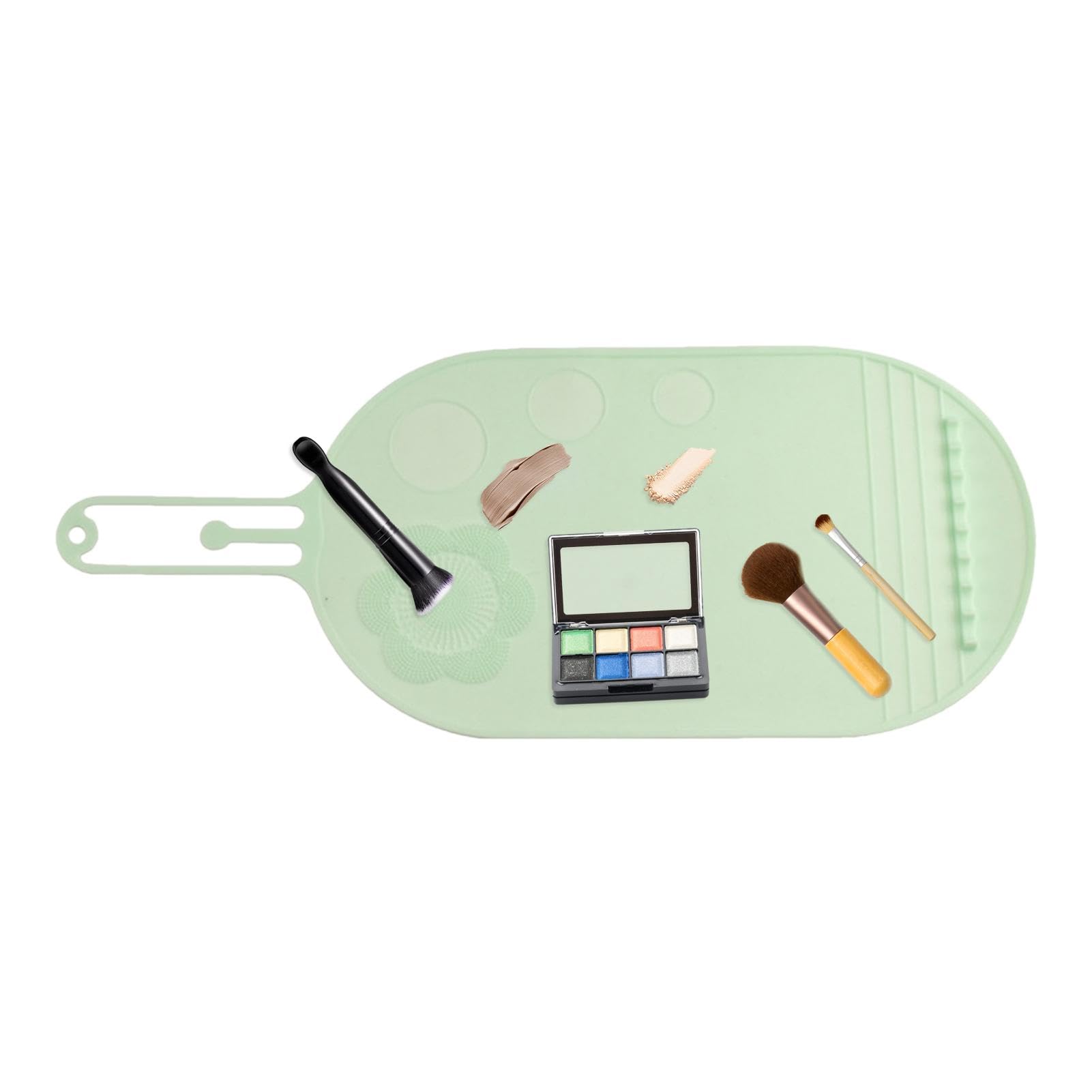 - Versatile Cleaning Tool: This Makeup Cleaning Mat isn't just for brushes—it's also ideal for cleaning variety of makeup tools, including sponges, and beauty blenders. Its versatile design and multi-textured surface make it suitable for all types of makeup applicators, ensuring comprehensive cleaning experience from start to finish. - Thorough Scrubber Mat Pad: Achieve deep and thorough clean with this Scrubber Mat Pad. Its textured surface features multiple cleaning zones, allowing you to target different brush sizes and types with precision. From densely packed foundation brushes to delicate lip brushes, this mat pad ensures that every bristle is thoroughly cleansed. - Portable Cosmetic Cleaning Pad: Whether you're at home, this Portable Cosmetic Cleaning Pad is the perfect companion for keeping your makeup brushes clean and hygienic. Its compact size and lightweight design make it easy to pack in your travel bag or makeup kit, ensuring that you can maintain your brushes' cleanliness wherever you are. - Silicone Brush Cleaning Tool: Say goodbye to messy and time-consuming brush cleaning methods with this Silicone Brush Cleaning Tool. Its textured surface and gentle silicone bristles effectively remove makeup remain, oils, and impurities from your brushes, leaving them clean, soft, and ready for good application. - Efficient Makeup Brush Cleaning: Elevate your makeup routine with this Makeup Cleaning Mat, versatile tool designed to simplify and streamline the process of cleaning your makeup brushes. Crafted from high-quality silicone, it offer efficient and thorough cleaning for foundation brushes, lip brushes, and more.