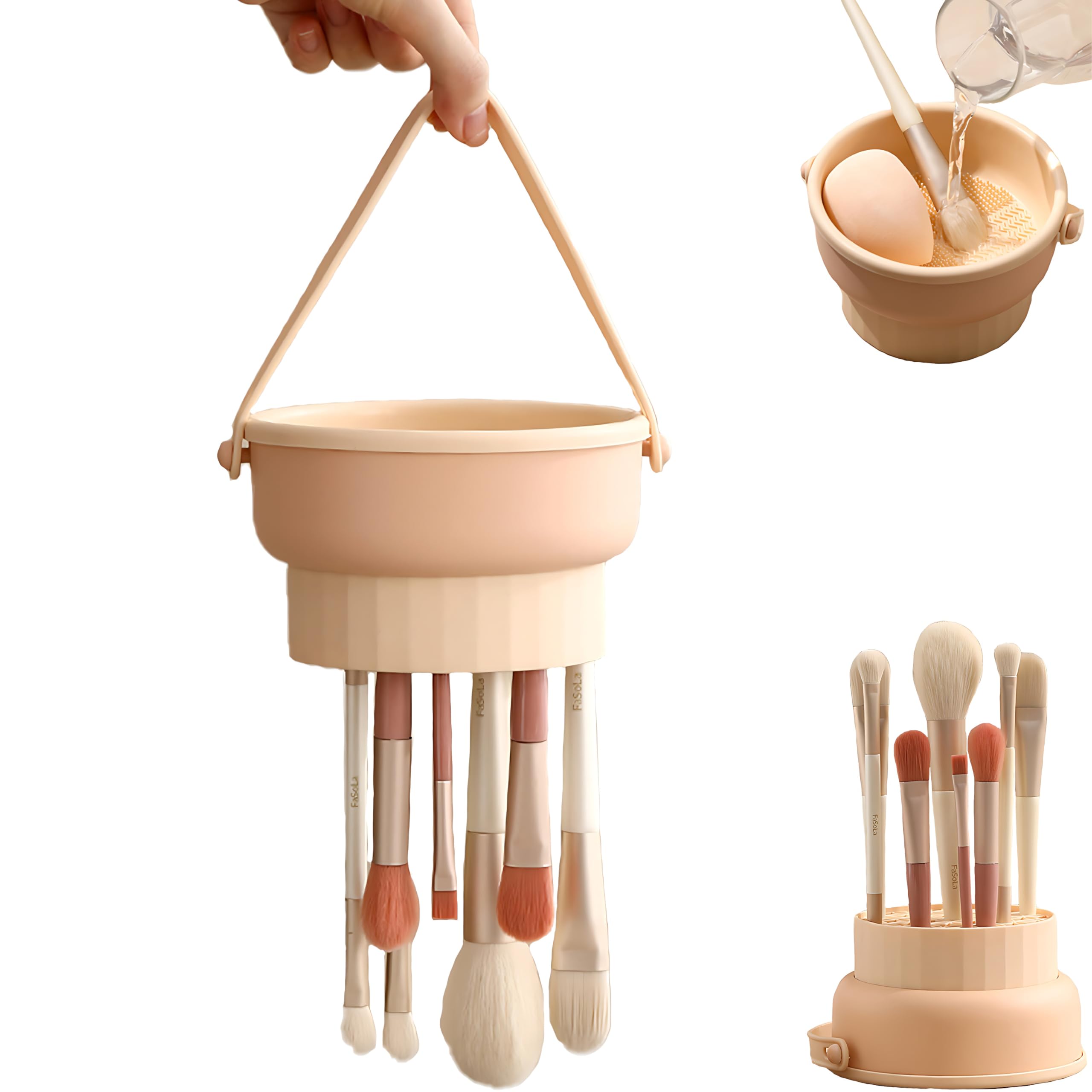 Discover the ultimate 3-in-1 solution for your beauty regimen with our multi-functional makeup brush cleaning bowl. Designed not only as a top-notch brush cleaner, but it doubles as a drying rack and triples as a storage stand for all your makeup tools. Made from eco-friendly PP material and combined with a gentle silicone design, rest assured your brushes are treated with care, ensuring longevity and a pristine clean. Dive into deep cleaning with 4 professional textures tailored for a variety of brushes. The uniquely crafted base with varying hole sizes ensures natural air-drying and convenient upside-down storage, all while guarding against messy splashes with its elevated edges. Cleaning is a breeze—just pour, scrub, and dry. And with a foldable and detachable handle, it's perfect for both travel and home use. A must-have for every beauty enthusiast on ! Gift this elegant tool to mothers, girlfriends, grandmothers, or friends, and let them bask in your thoughtful gesturePerfect Gift Choice: This elegant and practical makeup brush cleaning tool is a must-have for every beauty enthusiast. It makes a thoughtful gift for mothers, girlfriends, grandmothers, or friends, showcg your care and consideration for their beauty routines. Easy Cleaning and Storage: To effectively clean your brushes, simply pour some brush cleaner onto the textured surface of the bowl and gently scrub back and forth. Afterward, place the tool in a well-ventilated area to dry. The product comes with a foldable and detachable handle, making it convenient for both travel and home storage. Varied Texture Design: With four professional textures, this tool is designed to thoroughly clean a variety of makeup brushes. The base features purposefully designed holes of varying sizes that allow brushes to naturally air-dry while being stored upside down. Raised edges prevent water from splashing out during the drying process. Eco-friendly and Durable Material: Crafted from environmentally-friendly and health-conscious PP material, combined with a soft silicone design, this makeup brush cleaning tool ensures long-lasting use while treating your brushes gently. Experience worry-free cleaning with a product that's both sustainable and effective. Multi-functional Design: This makeup brush cleaning bowl offers more than just efficient brush cleaning—it's also a drying rack and storage stand for your makeup tools, providing a convenient 3-in-1 solution. Keep your vanity tidy by effectively cleaning, air-drying, and organizing your makeup brushes, sponges, and puffs.