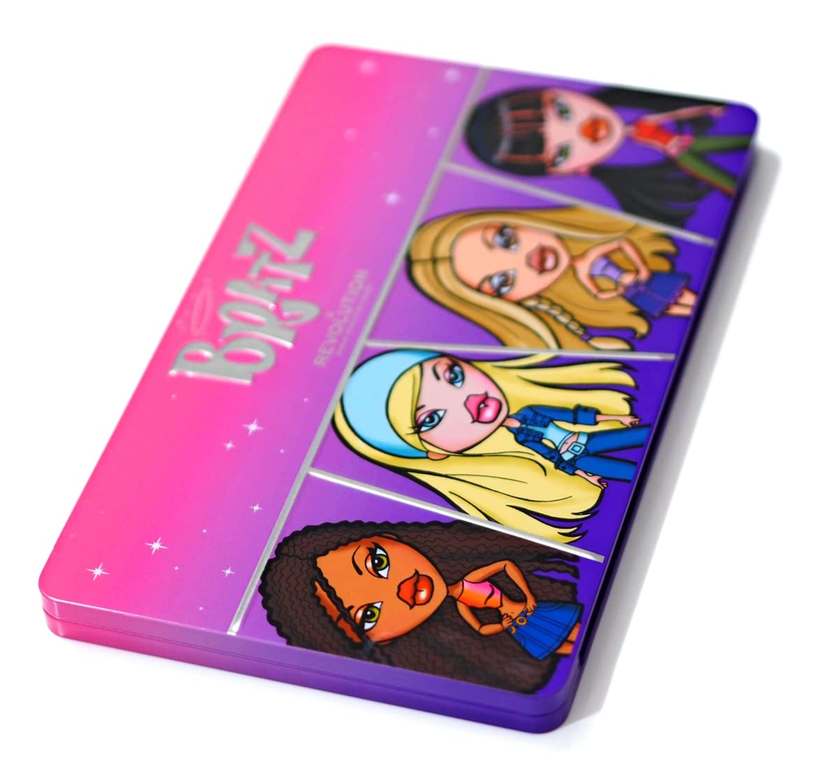 Check out the super stylish Makeup Revolution x Bratz collection! Your favorite girls are bringing you Y2K vibes with these amazing must-haves. From pop eyeshadow palettes to intense lip glosses, these fashion-forward girls have it all! Cloe, Sasha, Jade, and Yasmin are ready to take you to Stylesville with this ultimate Revolution x Bratz Limitless palette! This fun, eye-catching, and one-of-a-kind palette is packed with 27 matte, shimmer, and metallic shades. It features gorgeous colors like MY GIRLZ, a dreamy lilac matte STILESVILLE, a tangy lemon matte FUNKY, a rich green glow and FASHION, a shimmery lilac madness, among others. Vegan and cruelty-free, shop the entire Makeup Revolution x Bratz collection here. HOW TO USE Apply with an eyeshadow brush and blend well.FASHION: an iridescent lilac shade and so much more! FUNKY: a rich, glossy green shade. STILESVILLE: a tangy, lemony matte shade. MY GIRLZ: a dreamy, matte lilac shade.Makeup Revolution X Bratz Doll Eyeshadow Palette (27)DESCRIPTION DU PRODUIT DESCRIPTION DU PRODUIT Découvrez la super stylée collection Makeup Revolution x Bratz ! Les girls préférées vous apportent des vibes Y2K avec ces must-haves incroyables. Des palettes d'ombre à paupières pop jusqu'aux glosses à lèvres intenses, les filles passionnées de mode ont tout pour vous ! Cloe, Sasha, Jade et Yasmin sont prêtes à vous emmener à Stylesville avec ce palette ultime Revolution x Bratz Limitless ! Ce palette amusant, remarquable et unique en son genre est rempli de 27 teintes mates, brillantes et métalliques. Il contient des couleurs magnifiques comme MY GIRLZ, une matte lila rêveuse, STILESVILLE, une matte citronnée piquante, FUNKY, une riche glow verte, et FASHION, une folie lila irisée, entre autres. Vegan et sans cruauté, shoppez la collection entière Makeup Revolution x Bratz ici. MODE D'EMPLOI Appliquer avec un pinceau à fard à paupières et bien estomper.FASHION: une teinte irisée lila et bien plus encore !. FUNKY: une teinte brillante verte riche. STILESVILLE: une teinte matte citronnée piquante. MY GIRLZ: une teinte matte rêveuse lila.