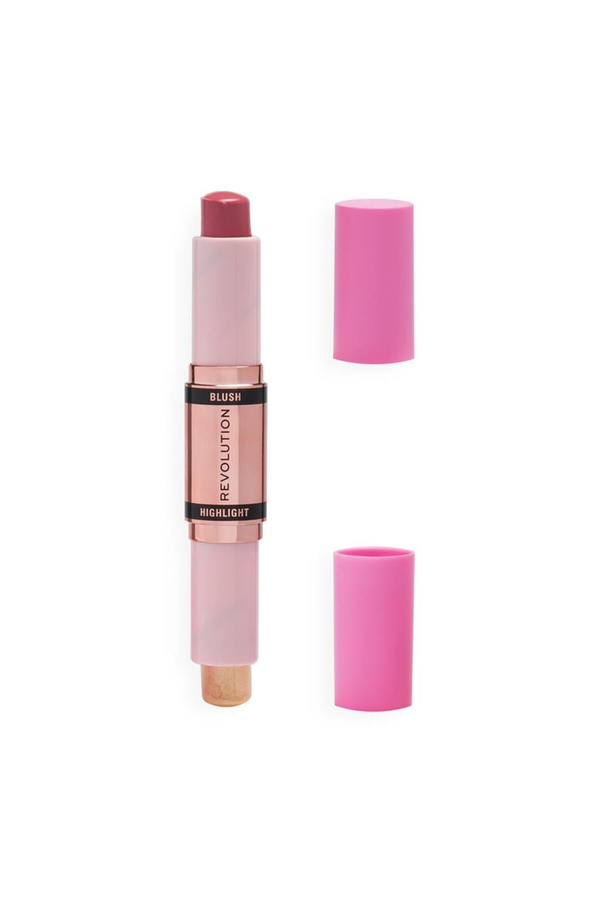 Revolution Blush Let all eyes be on you with the Illuminator Stick!On one end, there is a matte You can effortlessly highlight and shine at any time with these dual-use sticks, which consist of pigmented blush and a super sparkly highlighter that will lift your cheeks on the other.The creamy, blendable texture of the matte blush and the shimmering structure of the highlighter help add dimension, shade and highlight your facial features for a flawless make-up look.Use:Apply matte pigmented blush to the upper part of your cheeks. Apply the super sparkly highlighter on your cheekbones and along the bridge of your nose. Blend using Makeup Revolution Create Angled Foundation Brush R8 or Makeup Revolution Create Blending Sponge, depending on your preference.