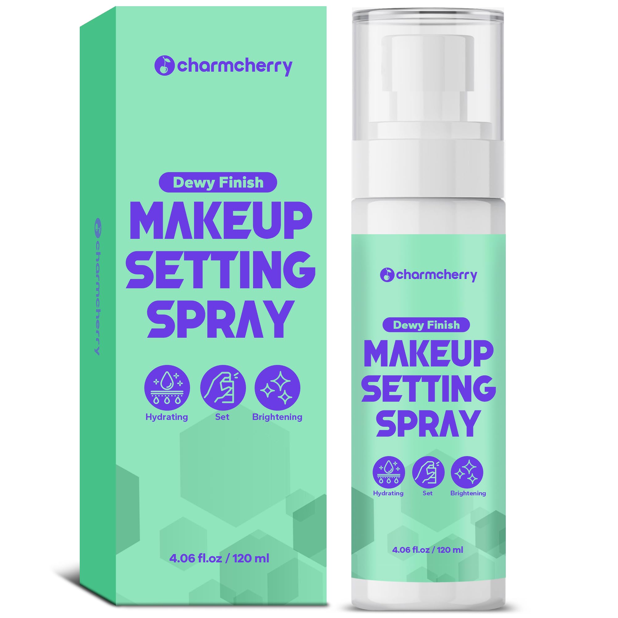 Compact and Travel-Friendly: Each bottle of CharmCherry Setting Spray is 4 oz, making it compact and travel-friendly for on-the-go touch-ups. Whether you're commuting, traveling, or attending an important event, you can effortlessly refresh your look anytime, anywhere. The 02 Dewy Finish is perfect for dry skin, keeping your complexion hydrated and radiant. Easy to Use: CharmCherry Setting Spray is designed for easy application. Simply press and release a fine mist that evenly covers your entire face, setting your makeup in seconds. To use, hold the bottle about 8 inches from your face and spritz 2-4 times after applying makeup, allowing it to dry naturally. The 02 Dewy Finish adds a luminous glow without making your skin feel greasy. Skin-Friendly Formula: CharmCherry Setting Spray features a gentle, alcohol-free, and fragrance-free formula that minimizes skin irritation. Enriched with natural ingredients like aloe vera and green tea extract, it not only sets your makeup but also soothes and hydrates your skin. The 02 Dewy Finish is packed with hydrating ingredients to keep dry skin moisturized for a fresh, glowing look. Multi-Purpose Use: CharmCherry Setting Spray is more than just a finishing spray—it can also be used as a primer to even out skin tone and extend makeup wear.The 02 Dewy Finish can be used as a hydrating mist before makeup, enhancing skin's moisture for a smoother application. Both sprays can also be used throughout the day as a refreshing mist to revitalize your look. Long-Lasting Hold: CharmCherry Setting Spray guarantees that your makeup stays in place all day, whether it's a long workday or a night out. The 02 Dewy Finish spray, on the other hand, hydrates and adds a natural glow, ideal for all skin types. Both sprays use ultra-fine mist technology for even coverage, preventing makeup from becoming patchy or cakey.