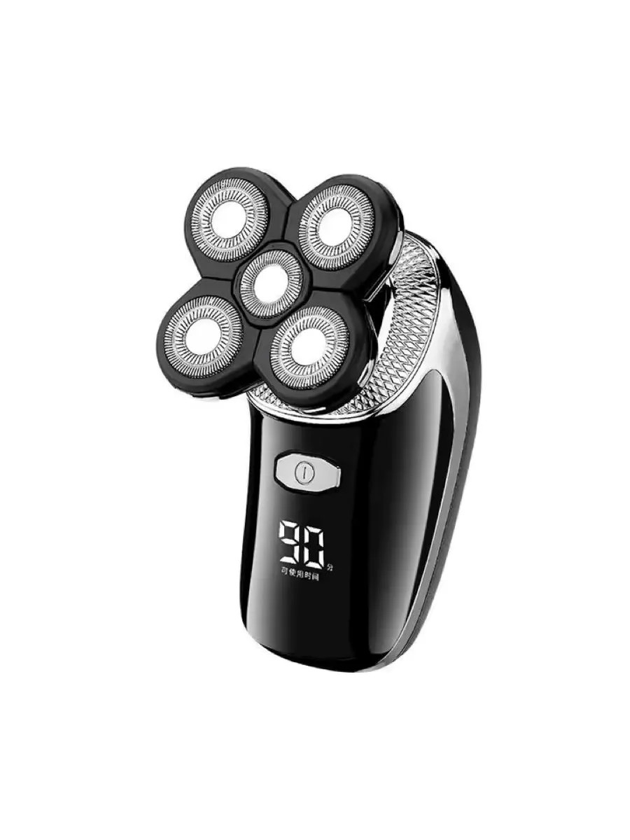 The device features a rotary system with 5 floating heads and double Japanese blades for a comfortable, close shave, even in hard-to-reach areas.