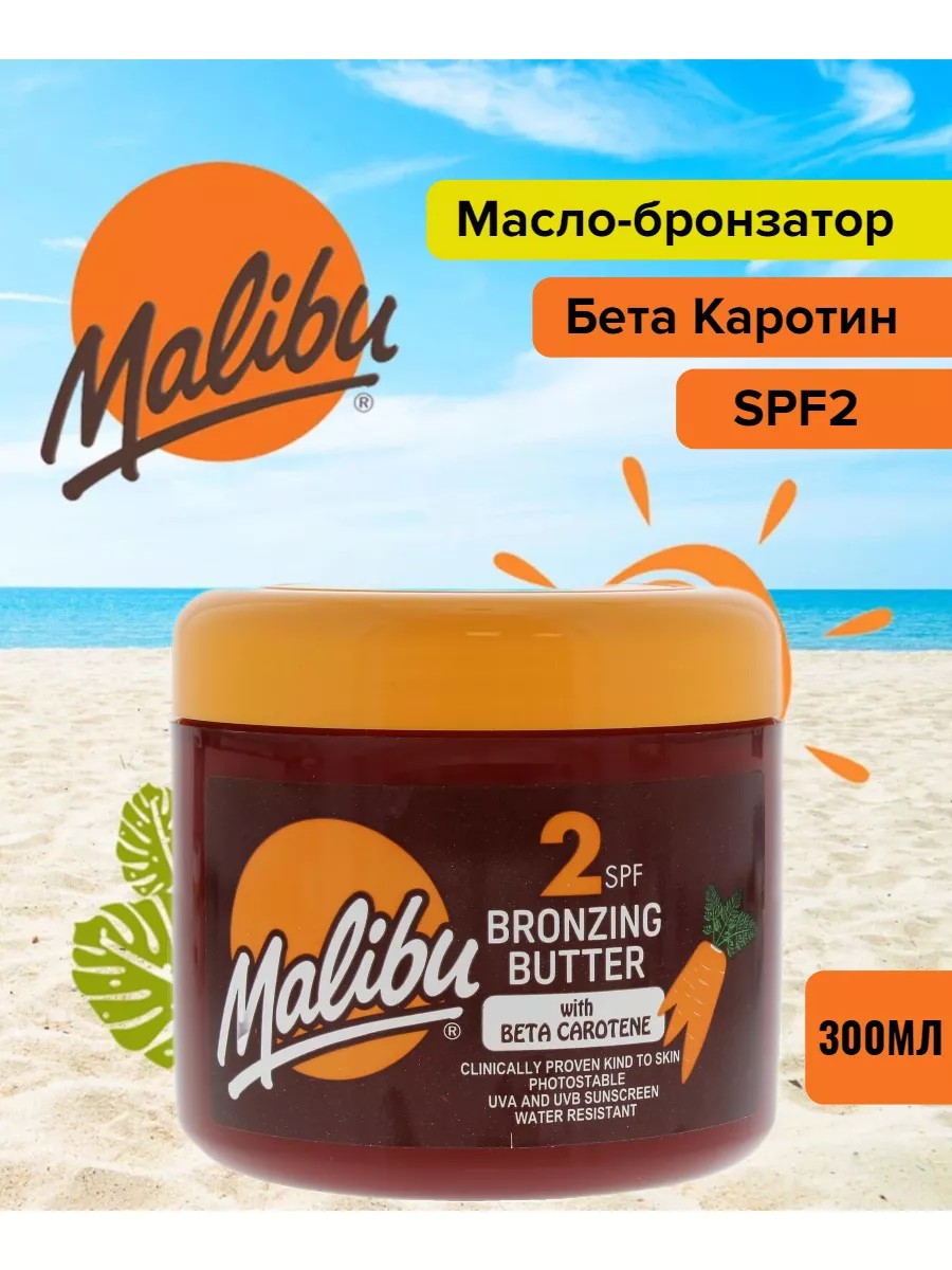 Pamper your skin with this high-quality Malibu Bronzer Beta Carotene SPF2 UVA+UVB creamy lotion (300ml), specially formulated to deeply hydrate and nourish your skin for a beautiful, even tan.