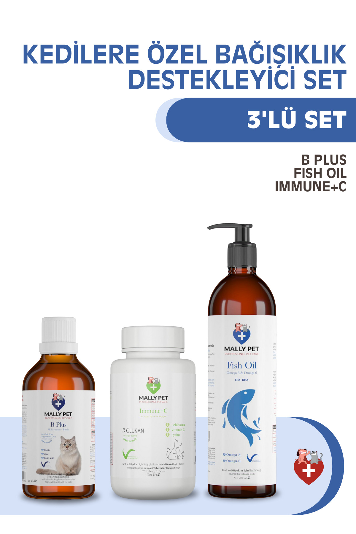 MALLY PET PROFESSIONEL PET CARE Immune Support Set for Cats (B PLUS FISH OIL IMMUNE-C) Set of 3
