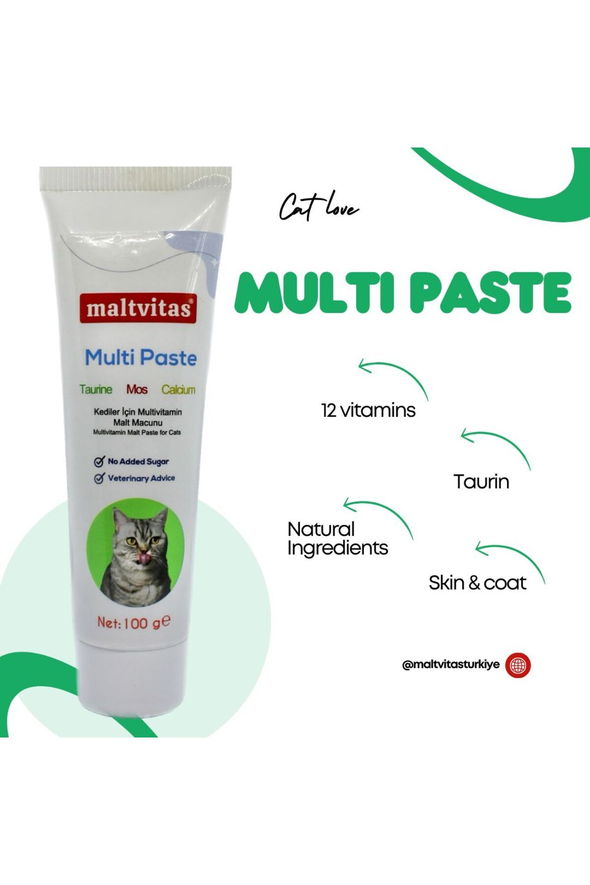 - A delicious malt paste specially formulated to meet the daily vitamin and mineral needs of cats. - Designed for all age groups, it easily adapts to the feeding routine of cats of all ages. - Suitable for all breeds, including neutered cats ideal for cats with sensitive digestive systems. - Made in Türkiye with locally sourced and high-quality ingredients.
