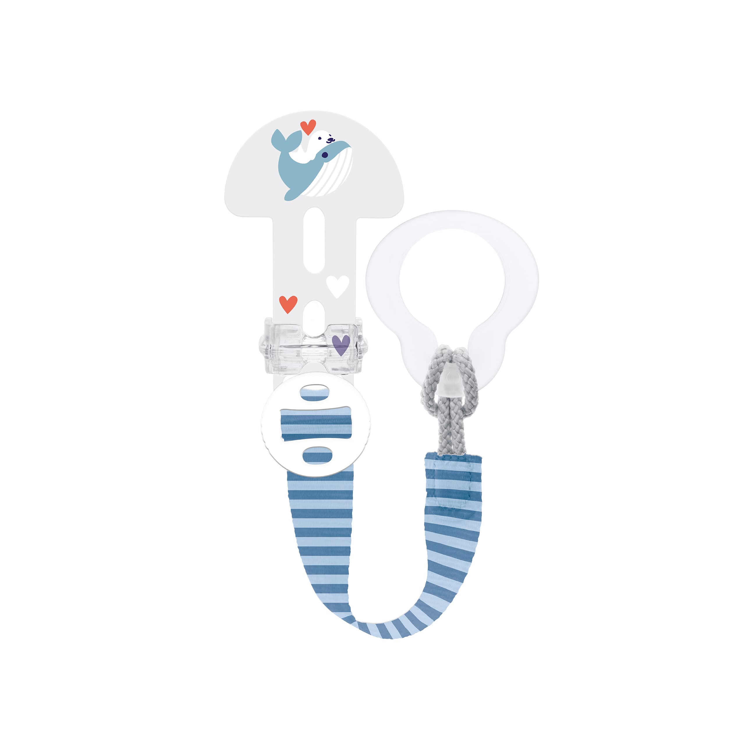 MAM Clip it! Schnullerband, längenverstellbarer Schnullerhalter mit abnehmbarem Ring, passend für Schnuller, Beißringe sowie Spielzeuge, Wal Clip it! Wal