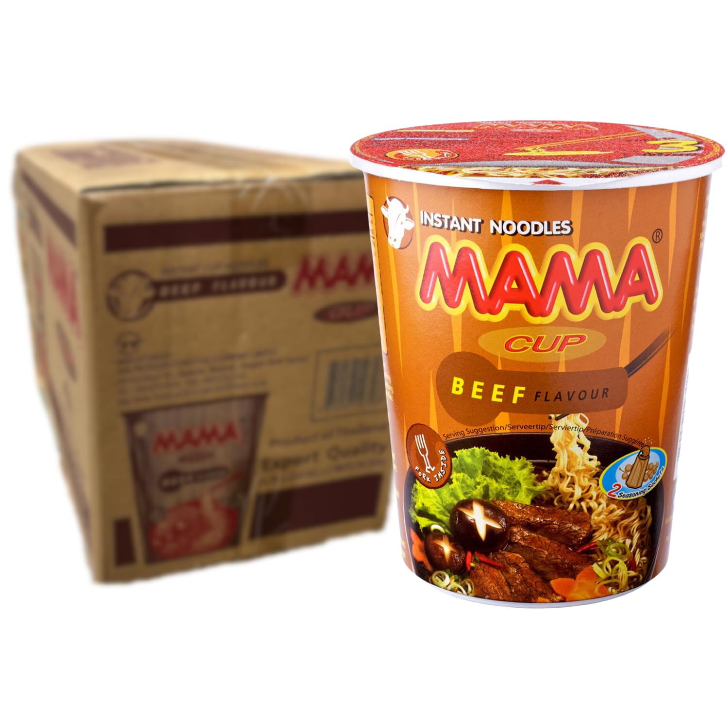 Instant Cup Noodles Beef 70 GR. Multipack (16 X 70 GR). From the MAMA brand. The number 1 noodle brand from Thailand. MAMA noodles are often available in different flavors, such as chicken, duck, Tom Yum pork, beef, spicy chicken, and pork, offering a range of choices for different taste preferences. Other popular flavors include Tom Yum with shrimp, green curry, and Mi Goreng (stir-fried noodles). These noodles are designed for quick and easy preparation, making them a convenient option for a quick meal or snack. MAMA is known for offering authentic Thai flavors, allowing everyone to enjoy Thai cuisine at home. Tip: Give your own twist to your MAMA noodles meal and add different ingredients such as: Fried tofu, grilled chicken, shrimp, slices of beef or pork, or a boiled egg for protein. Broccoli, spinach, pepper, mushrooms, cabbage, spring onions or corn as vegetables. And finally, sriracha, hoisin sauce, soy sauce, sesame oil, or lime juice as extra seasoning. INGREDIENTS Wheat flour 77 , paim oil, salt, sugar, dried vegetable (Carrot, spring onion), texture Soy, protein, spices, flavoring, (milk protein) 0.84 , flavor enhancer E621, E635, acidity regulator: E500, E501, E451, chill powder, tapioca starch, color (plain caramel), thickener, E466, soy sauce (soybean, water, salt) INSTRUCTIONS FOR USE Read the instructions on the packaging. SAFETY WARNING No warnings MANUFACTURER CONTACT INFORMATION kilbystraat 1, 8263 CJ, Kampen See moreMAMA - Instant Cup Noedels Rundvlees - Multipack (16 X 70 GR) Instant Cup Noedels Rundvlees 70 GR. Multipack (16 X 70 GR). Van het merk MAMA. Het nummer 1 noedelmerk uit Thailand. MAMA-noedels zijn vaak verkrijgbaar in verschillende smaken, zoals kip, eend, Tom Yum varkensvlees, rundvlees, pittige kip, en varkensvlees, wat een scala aan keuzes biedt voor verschillende smaakvoorkeuren. Andere populaire smaken zijn onder meer Tom Yum met garnalen, groene curry, en Mi Goreng (roergebakken noedels). Deze noedels zijn ontworpen voor snelle en eenvoudige bereiding, waardoor ze een handige optie zijn voor een snelle maaltijd of snack. MAMA staat bekend om het aanbieden van authentieke Thaise smaken, waardoor iedereen thuis kan genieten van de Thaise keuken. Tip: Geef je eigen draai aan je MAMA noedels maaltijd en voeg verschillende ingrediënten toe zoals: Gebakken tofu, gegrilde kip, garnalen, plakjes rundvlees of varkensvlees, of een gekookt ei voor de proteinen. Broccoli, spinazie, paprika, champignons, kool, lente-uitjes of maïs als groente. En als laatst sriracha, hoisinsaus, sojasaus, sesamolie, of limoensap als extra smaakmaker. INGREDIËNTEN Wheat flour 77 , paim oil, salt, sugar, dried vegetable (Carrot, spring onion), texture Soy, protein,spices, flavouring, (milk protein) 0.84 , flavour enhancer E621, E635, acidity regulator: E500, E501, E451, chill powder, tapioca starch, colour (plain caramel), thickener, E466, soy sauce (soybean, water, salt) GEBRUIKSAANWIJZING Lees de instructies op de verpakking. VEILIGHEIDSWAARSCHUWING No warnings CONTACTINFORMATIE FABRIKANT kilbystraat 1, 8263 CJ, Kampen Meer bekijken