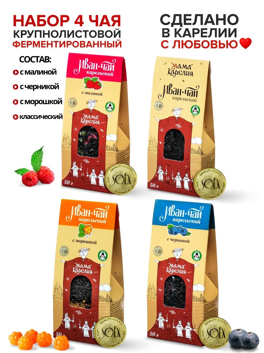 | Полное наименование товара | 4 иван чая с морошкой, малиной, черникой и классический |