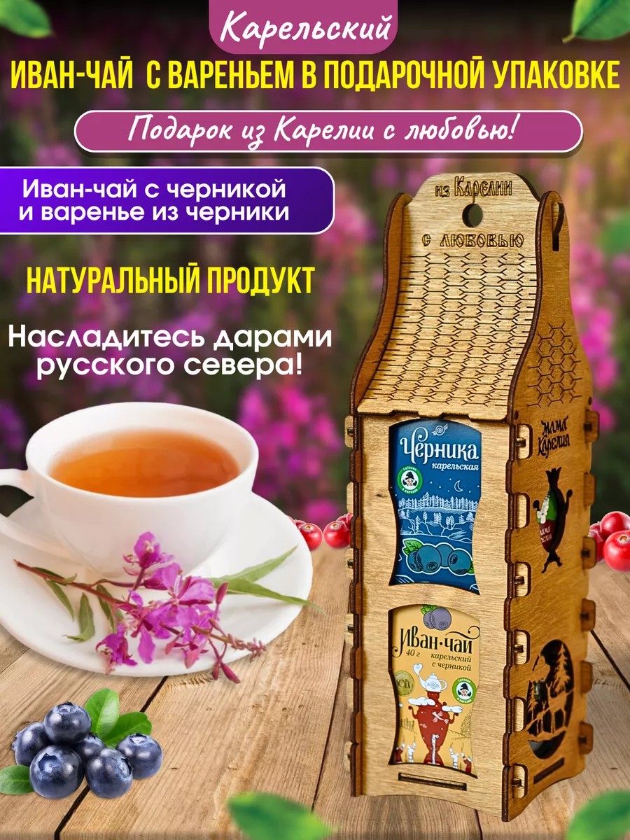 The "Ivan-tea with blueberries and blueberry jam" gift set is a unique combination of two natural products, created with love and care for your health. Karelian Ivan-tea with blueberries is not only a delicious drink but also a source of beneficial vitamins and microelements.