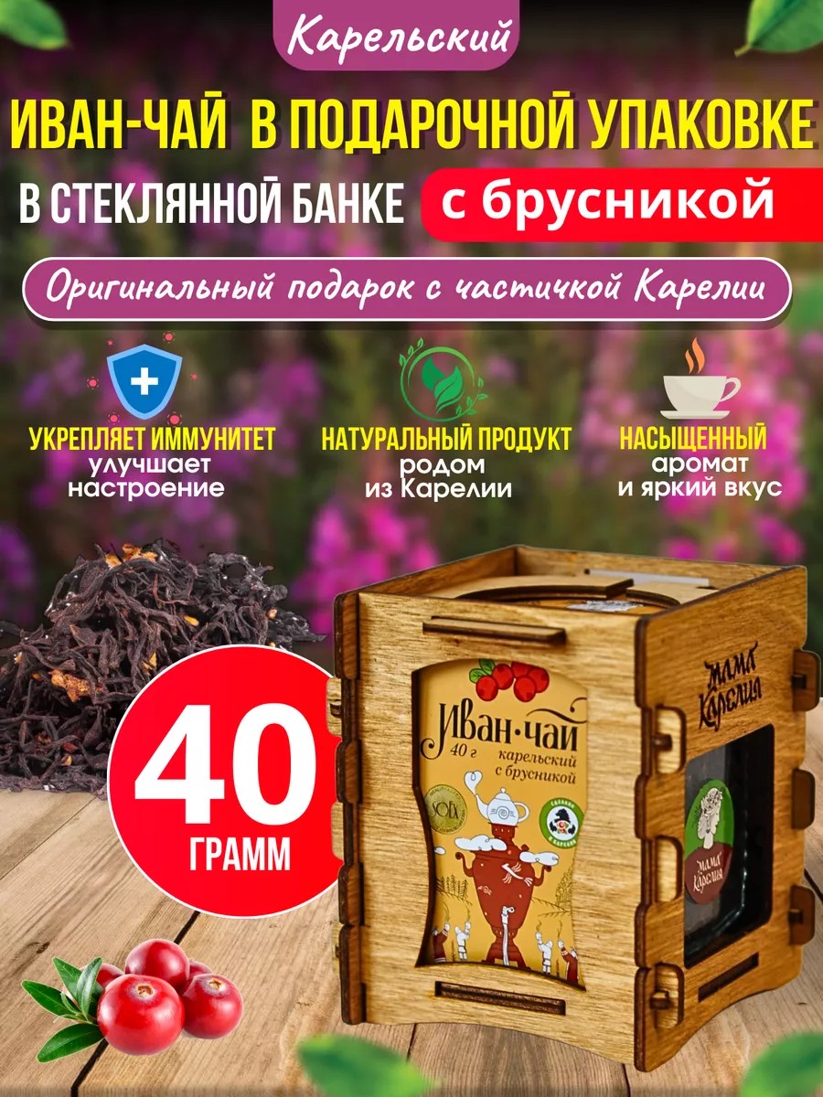 Мама Карелия Иван-чай карельский с брусникой в деревянной шкатулке, 40г